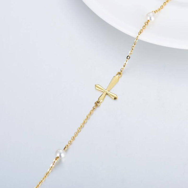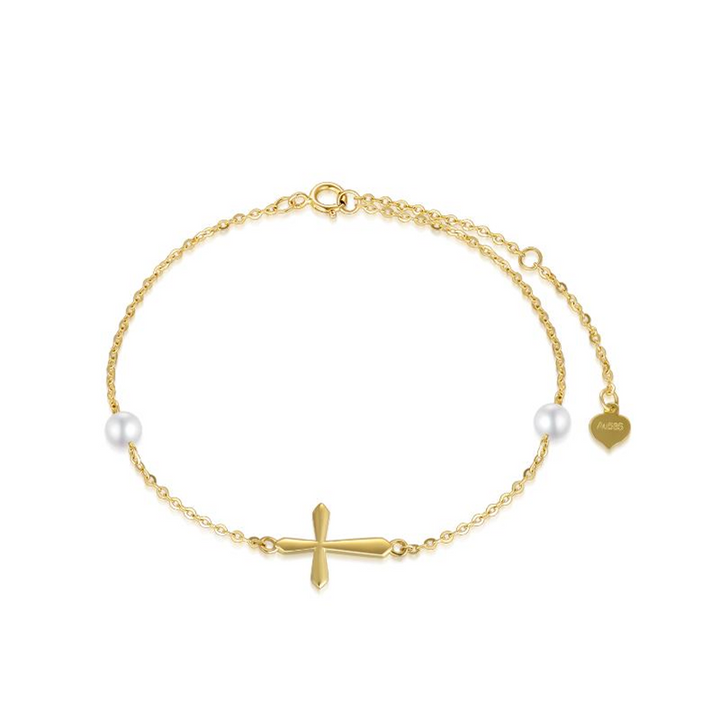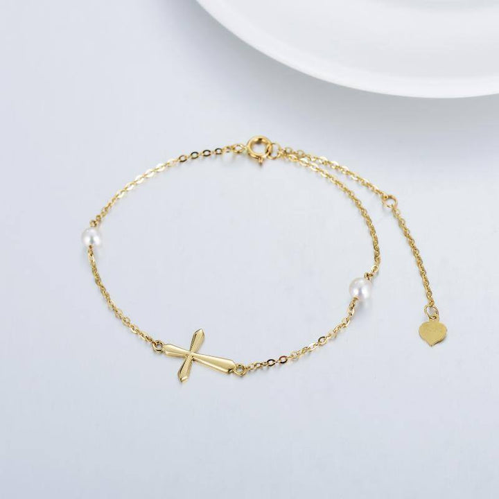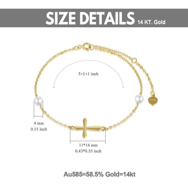 14K Gold Circular Shaped Pearl Cross Charm Bracelet
