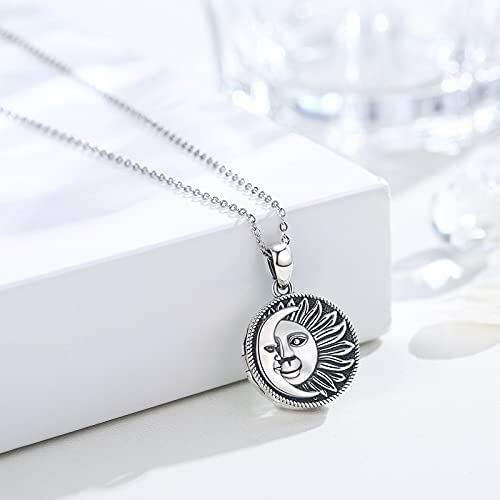 This Sterling Silver Moon & Sun Personalized Photo Locket Necklace by YFN is a no-stone, timeless, and sophisticated locket for women. Made from high-quality sterling silver and plated with white gold, it features delicately engraved moon and sun motifs, representing unity and balance. Designed without stones, the focus remains on its meaningful artistry and the personal photo you choose to enclose.
