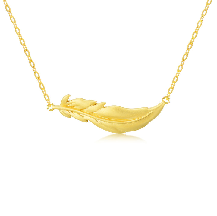 This no-stone Women's Pendant Necklace is Crafted from High-Quality 14K Gold, Featuring a Delicate Feather Design.