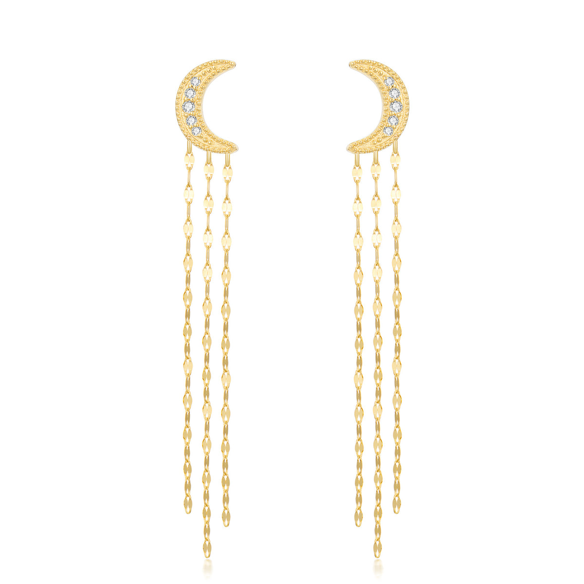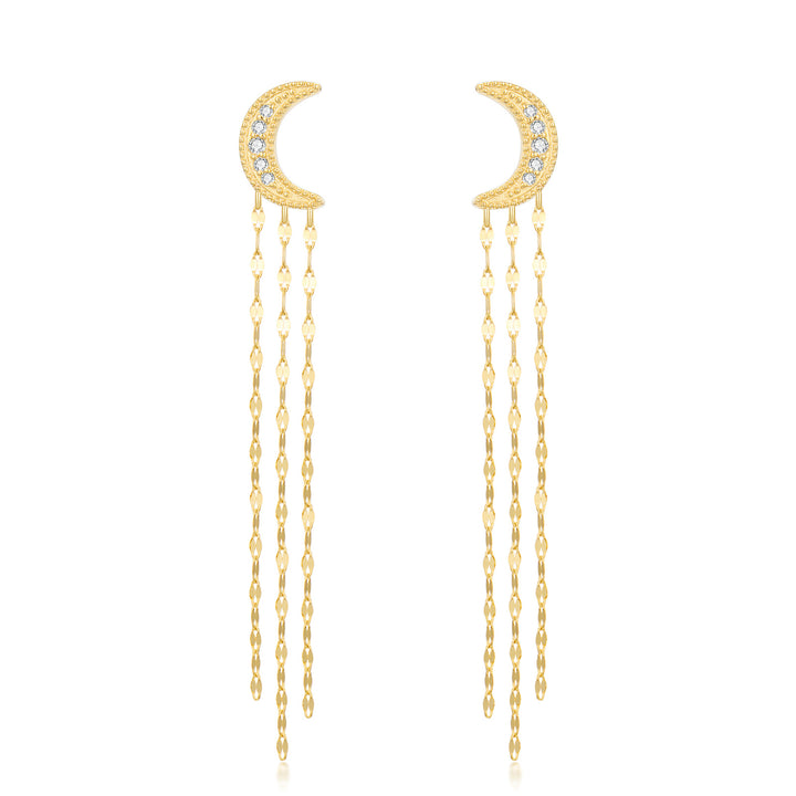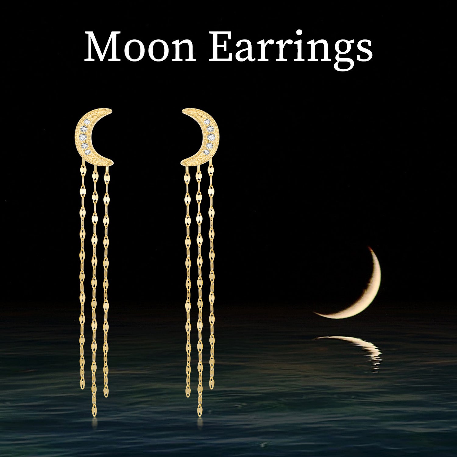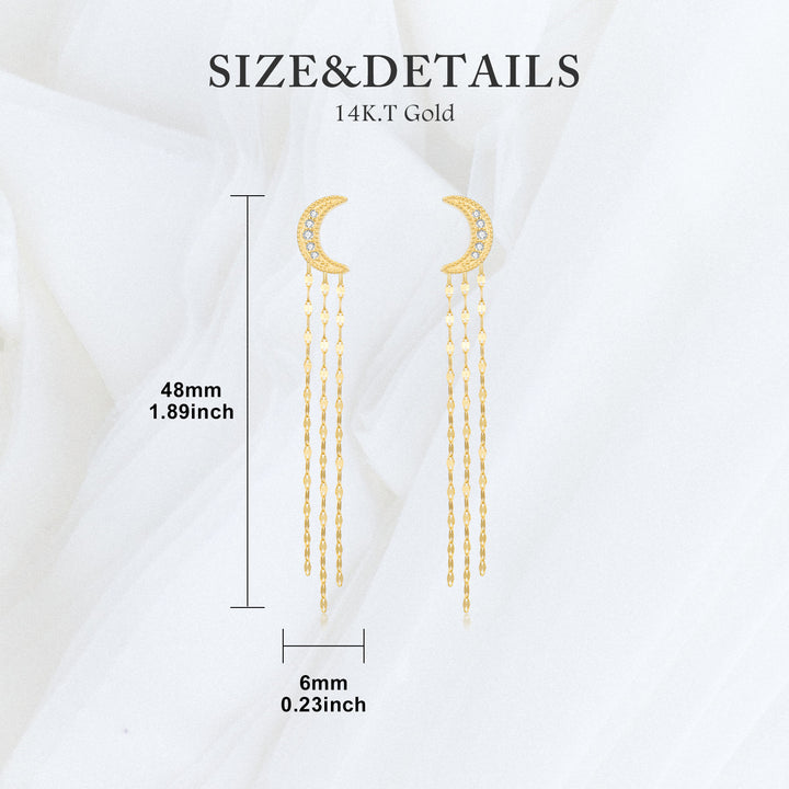 14K Gold Circular Shaped Moissanite Moon Drop Earrings