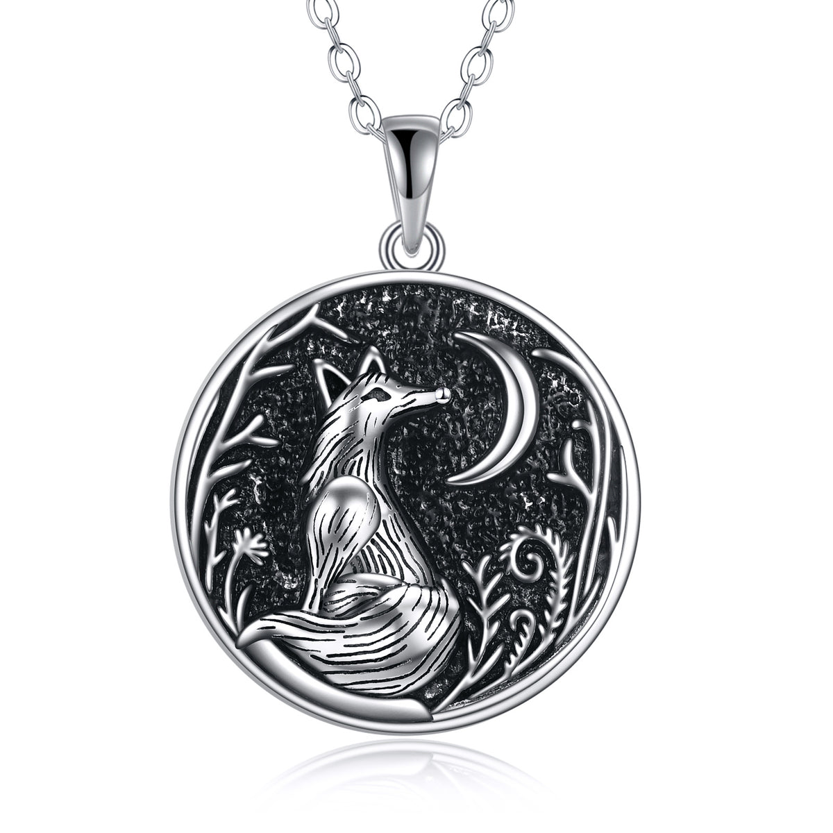 Sterling silver; fox and moon motif; retro silver finish; silver chain.