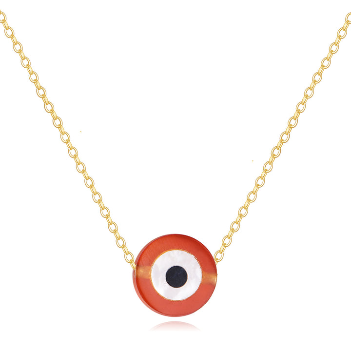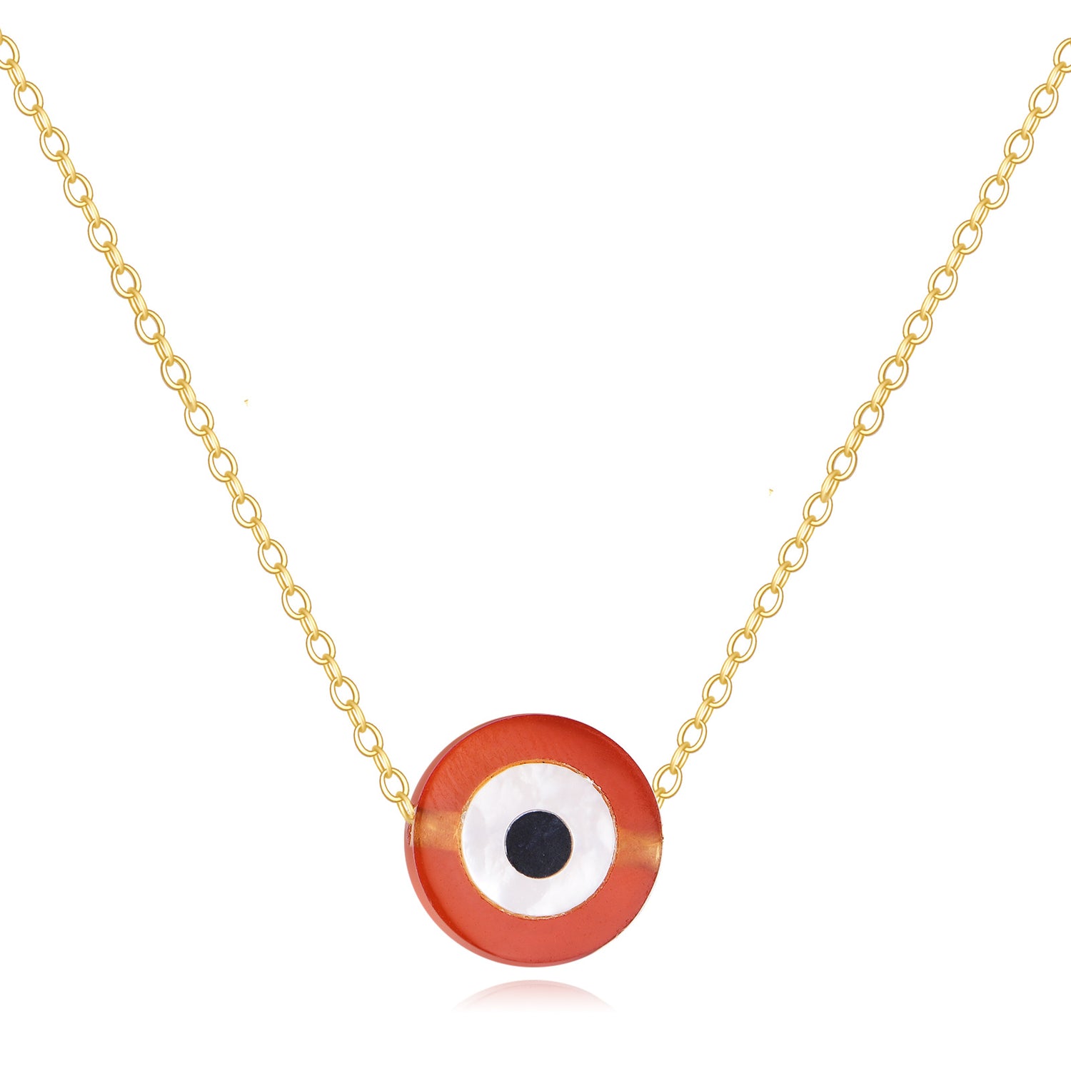 14K Gold Red Agate Evil Eye Pendant Necklace