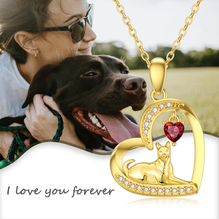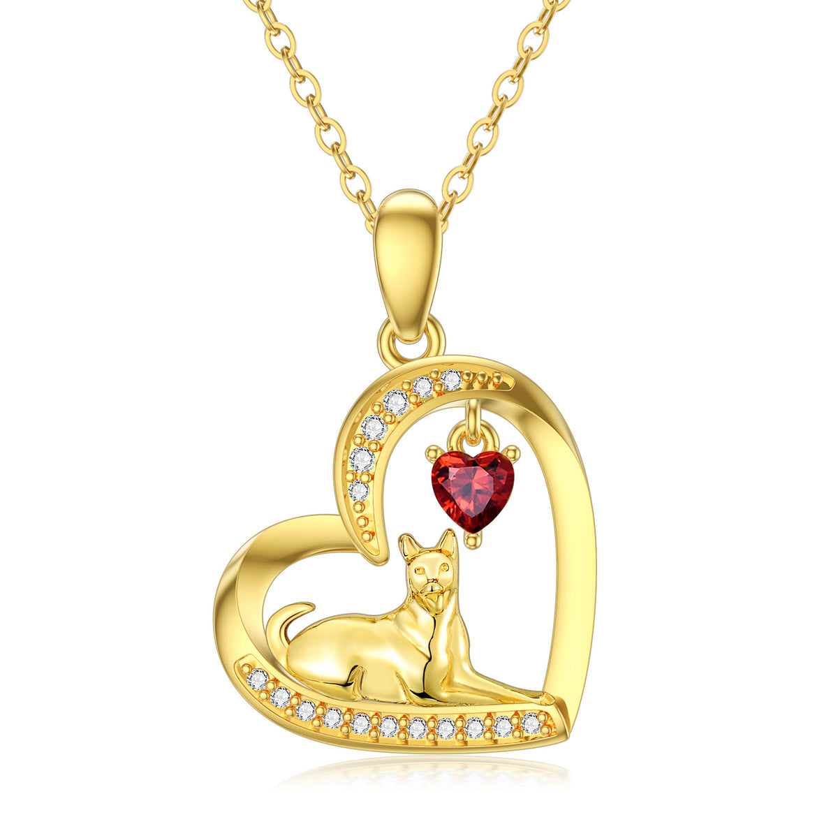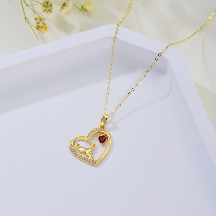 14K Gold Heart Cubic Zirconia Garnet Horse Pendant Necklace
