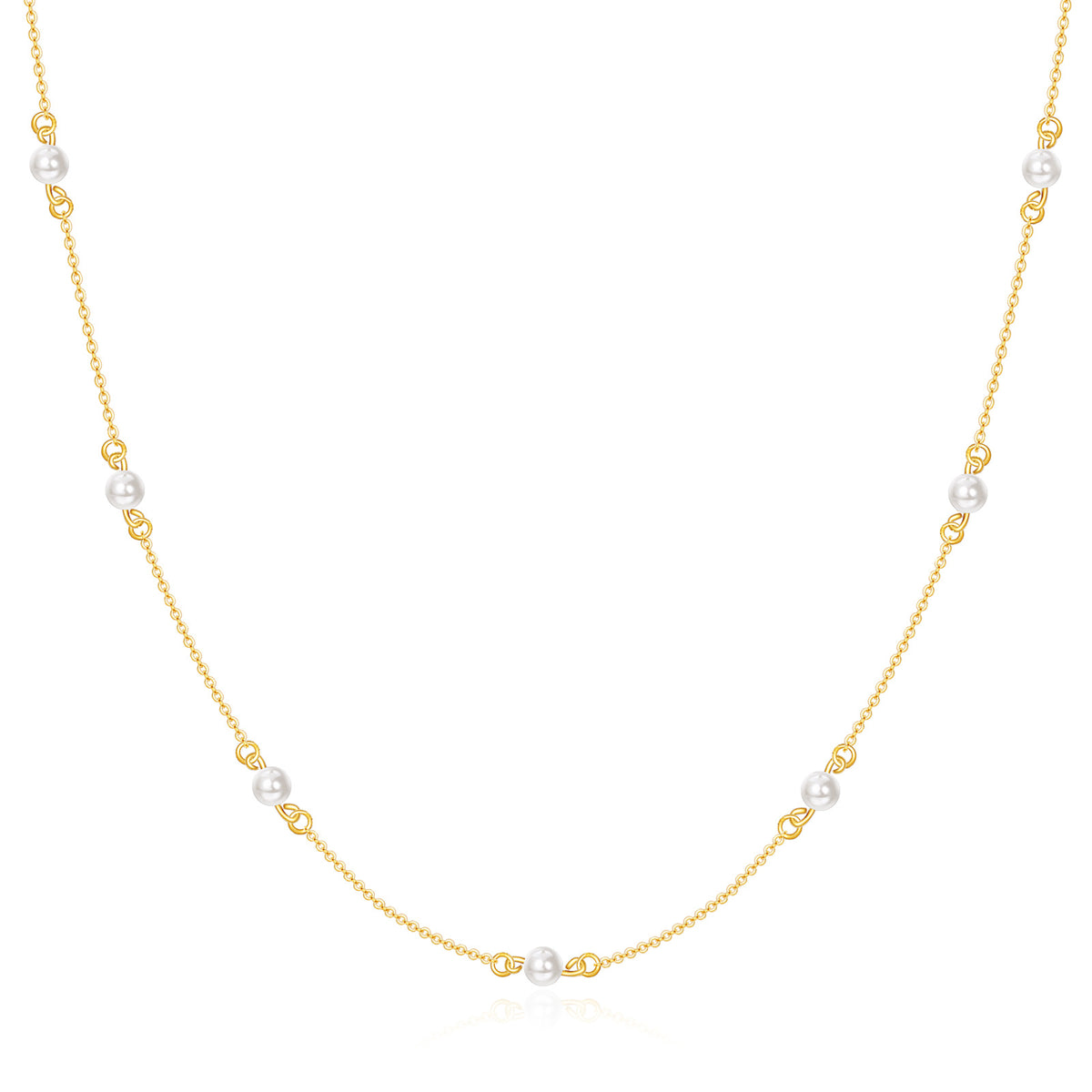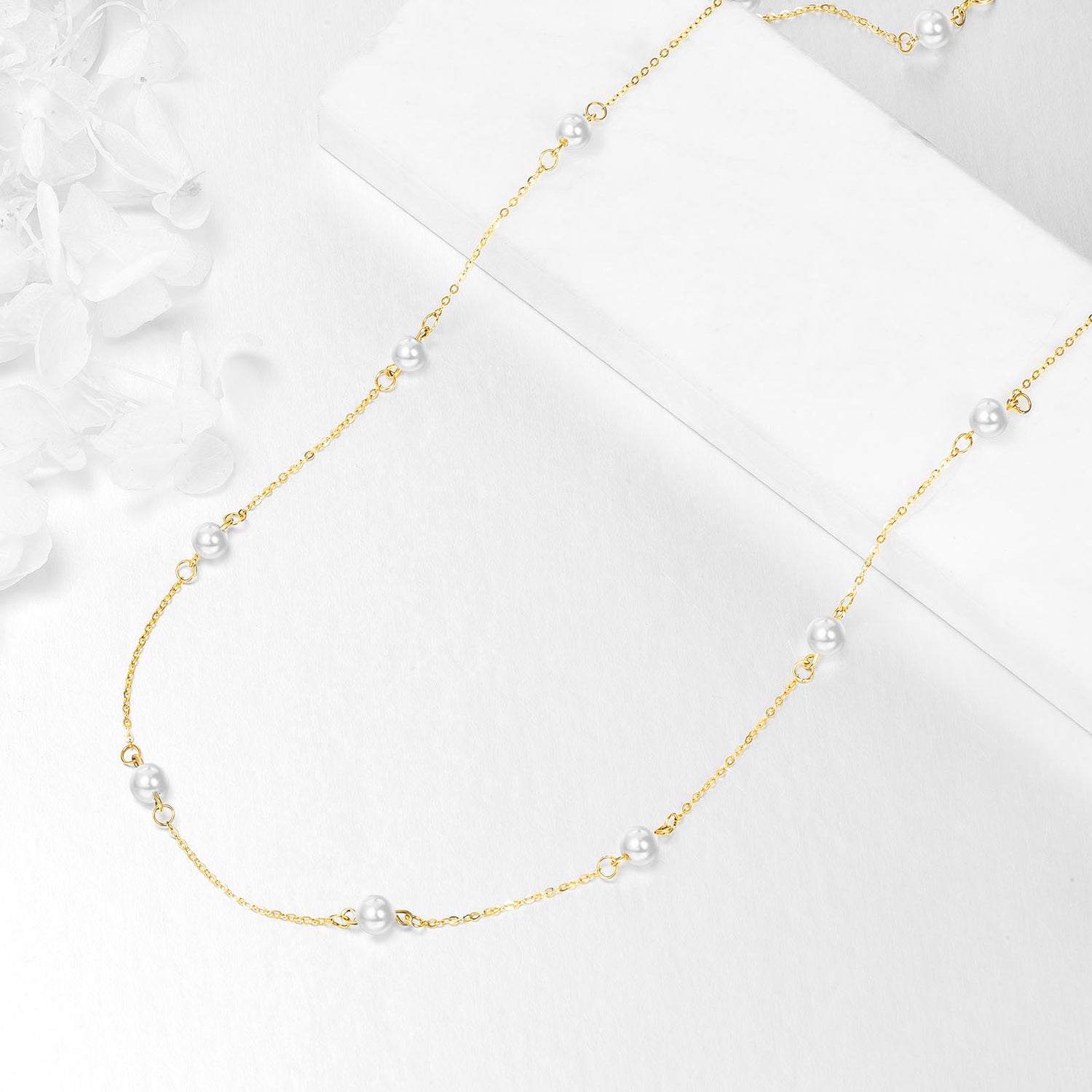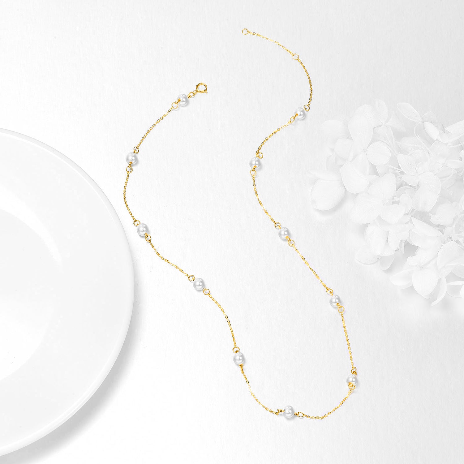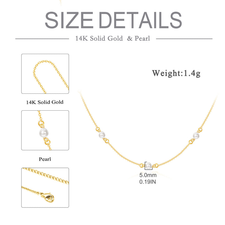 14K Gold Circular Shaped Pearl Bead Bead Station chain Necklace