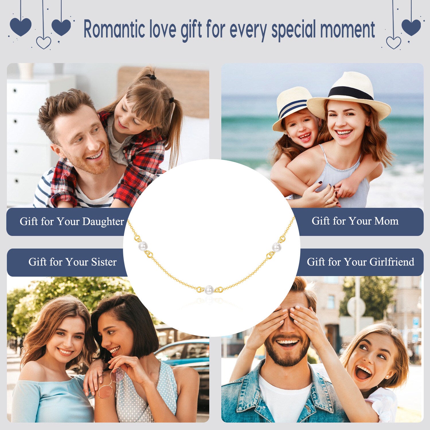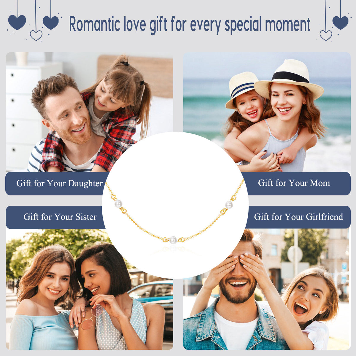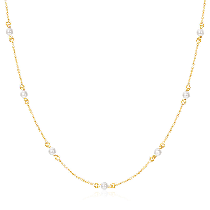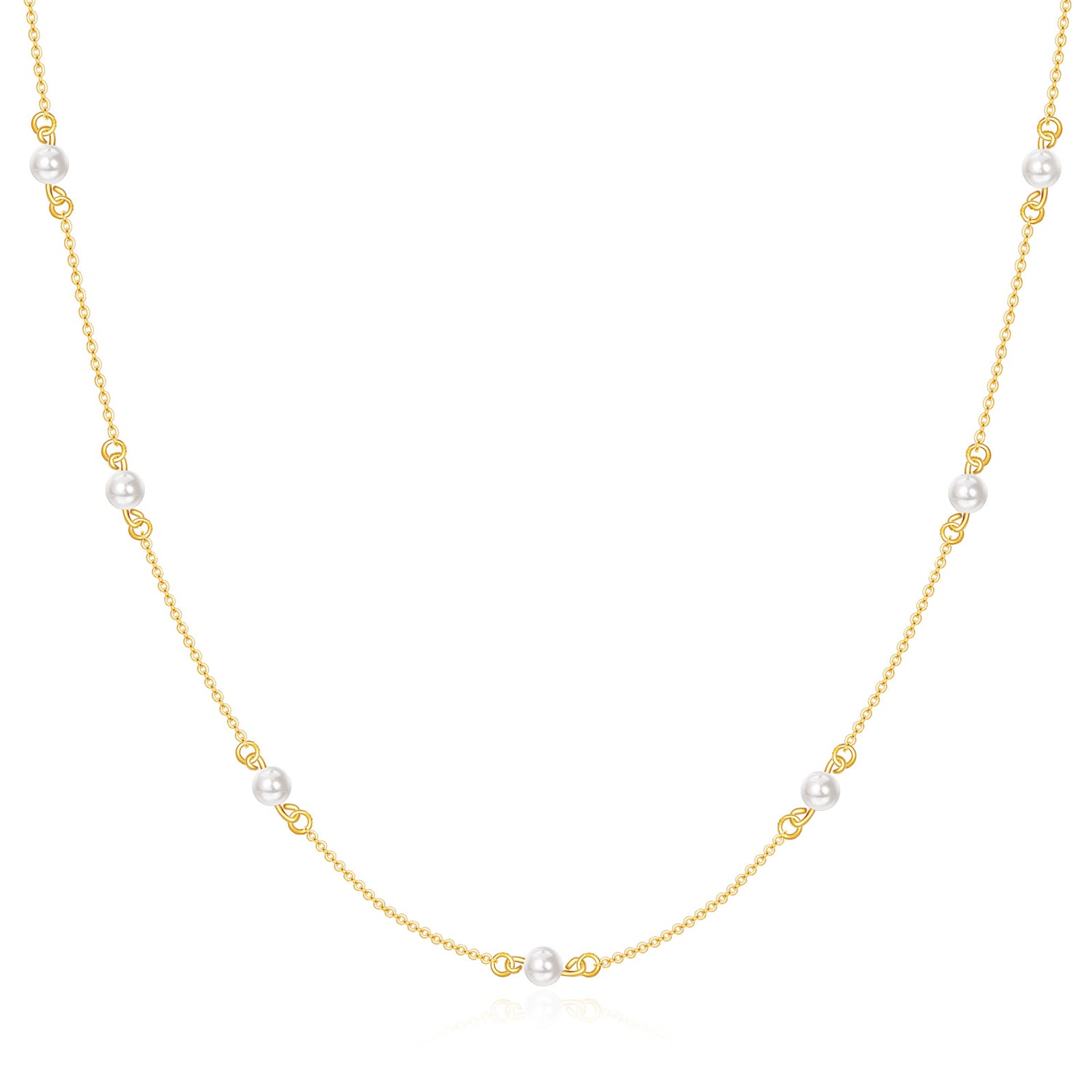 14K Gold Circular Shaped Pearl Bead Bead Station chain Necklace