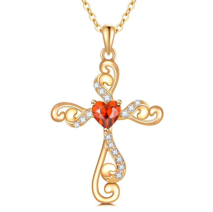14K Gold Personalized Birthstone Ivy Cross Heart Necklace for Women