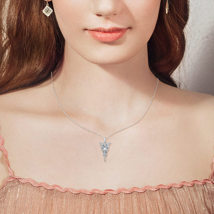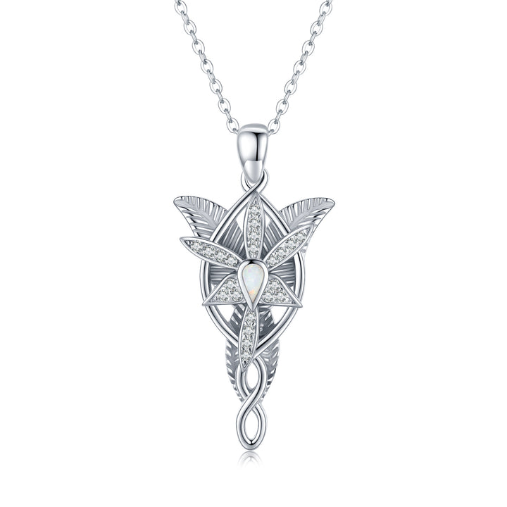 Sterling Silver Opal Celtic Knot & Cross Arwen Evenstar Pendant Necklace