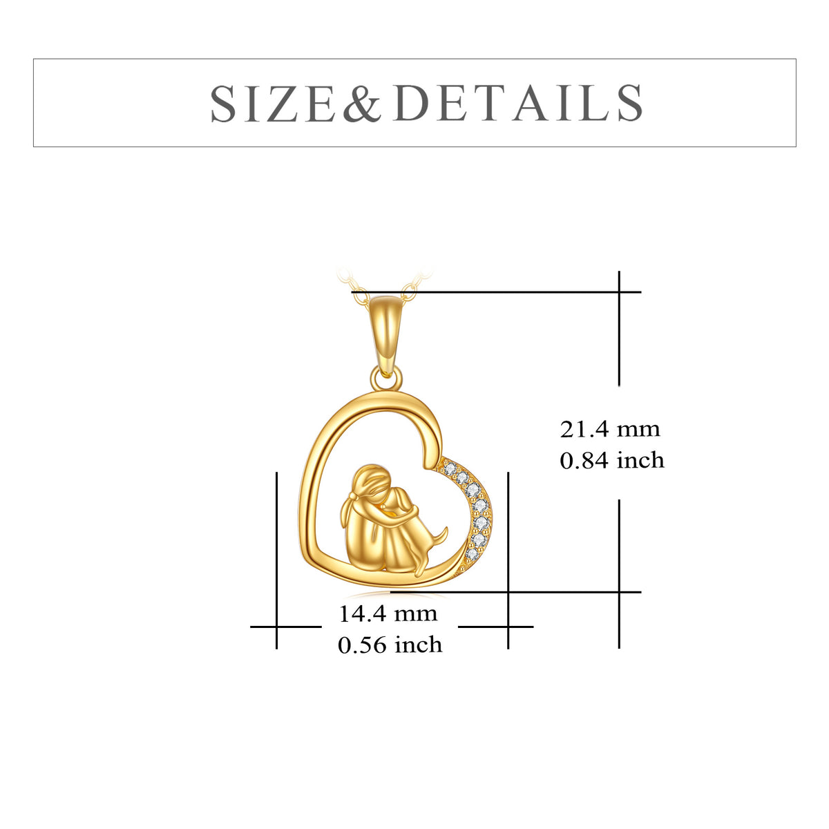 14K Gold Zircon Dog & Heart Pendant Necklace