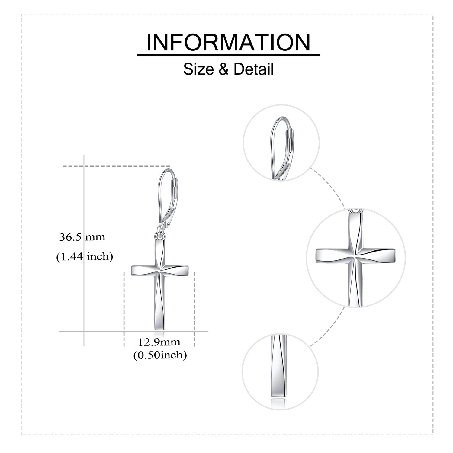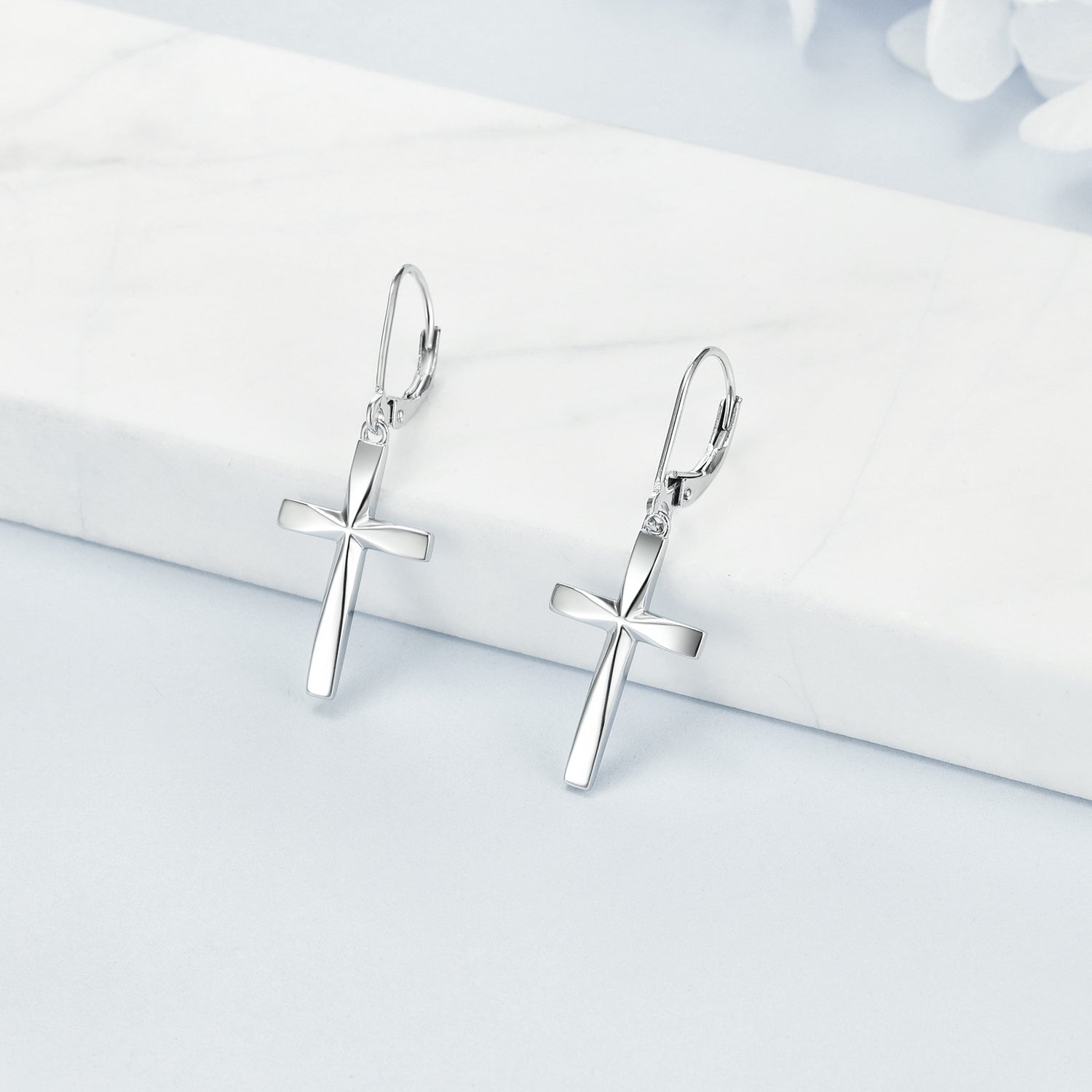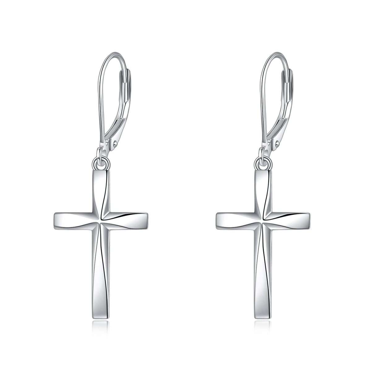 These no-stone Lever-back Earrings are crafted from Premium Sterling Silver with White Gold Plating, Featuring a Classic Cross Design.