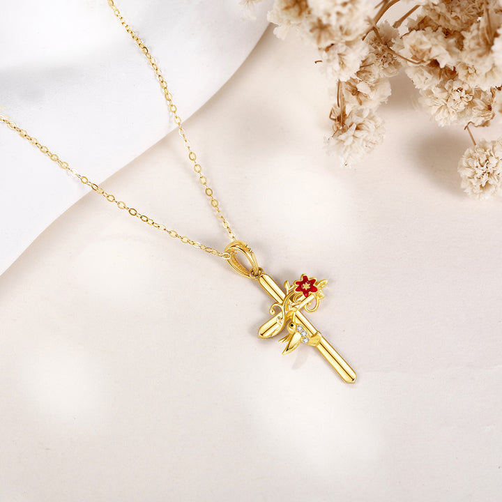 This 14K Gold Cubic Zirconia Hummingbird & Cross Pendant Necklace by YFN showcases the gleaming brilliance of 14K Gold, artfully adorned with intricate Cubic Zirconia. The design elegantly incorporates a Hummingbird and Cross motif, symbolizing freedom and faith, making it a perfect accessory for women who value both style and sentiment.