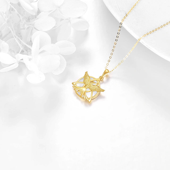 14K Gold Opal Phoenix & Celtic Knot Pendant Necklace