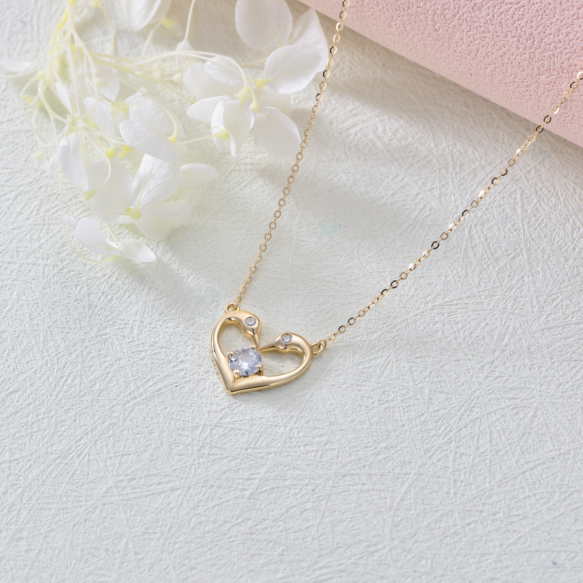 This 14K Gold Round Zircon Swan & Heart Pendant Necklace is a testament to enduring elegance and grace. Featuring a radiant Round Zircon centerpiece, the necklace showcases an enchanting Swan and Heart design in 14K Gold, creating a symbol of grace and love.