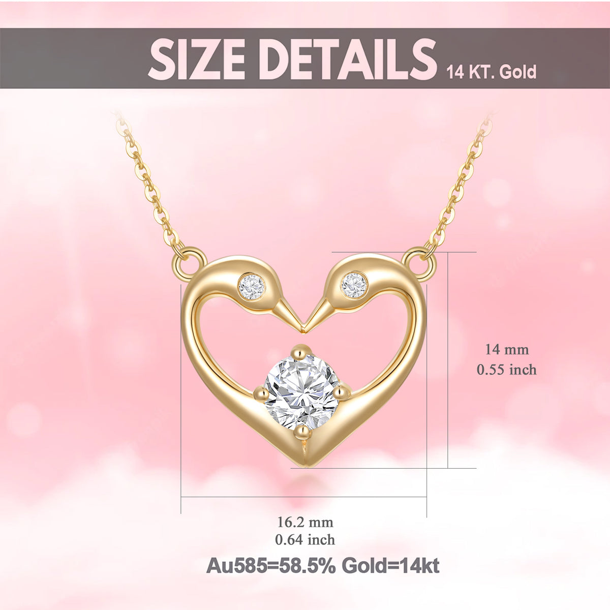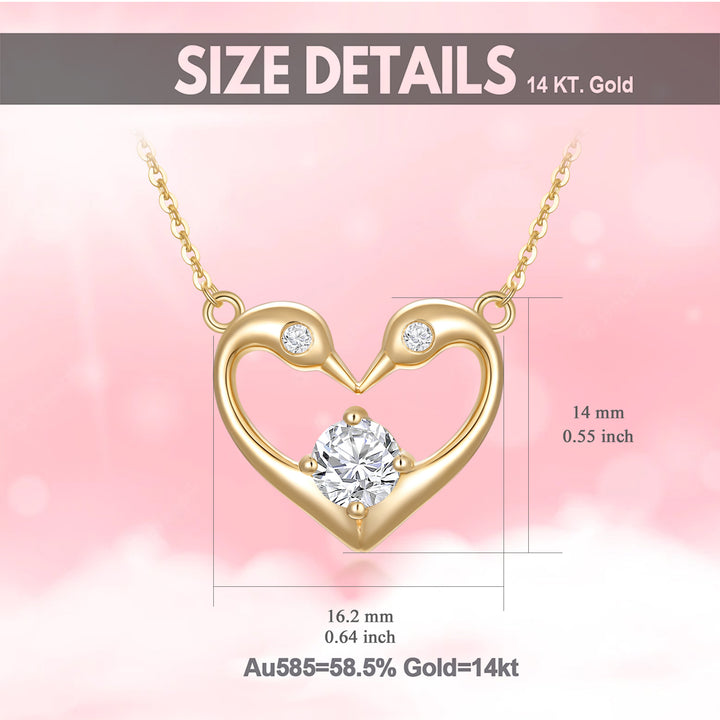 Meticulously crafted from 14K Gold, this Pendant Necklace features a radiant Round Zircon centerpiece with a Swan and Heart design.