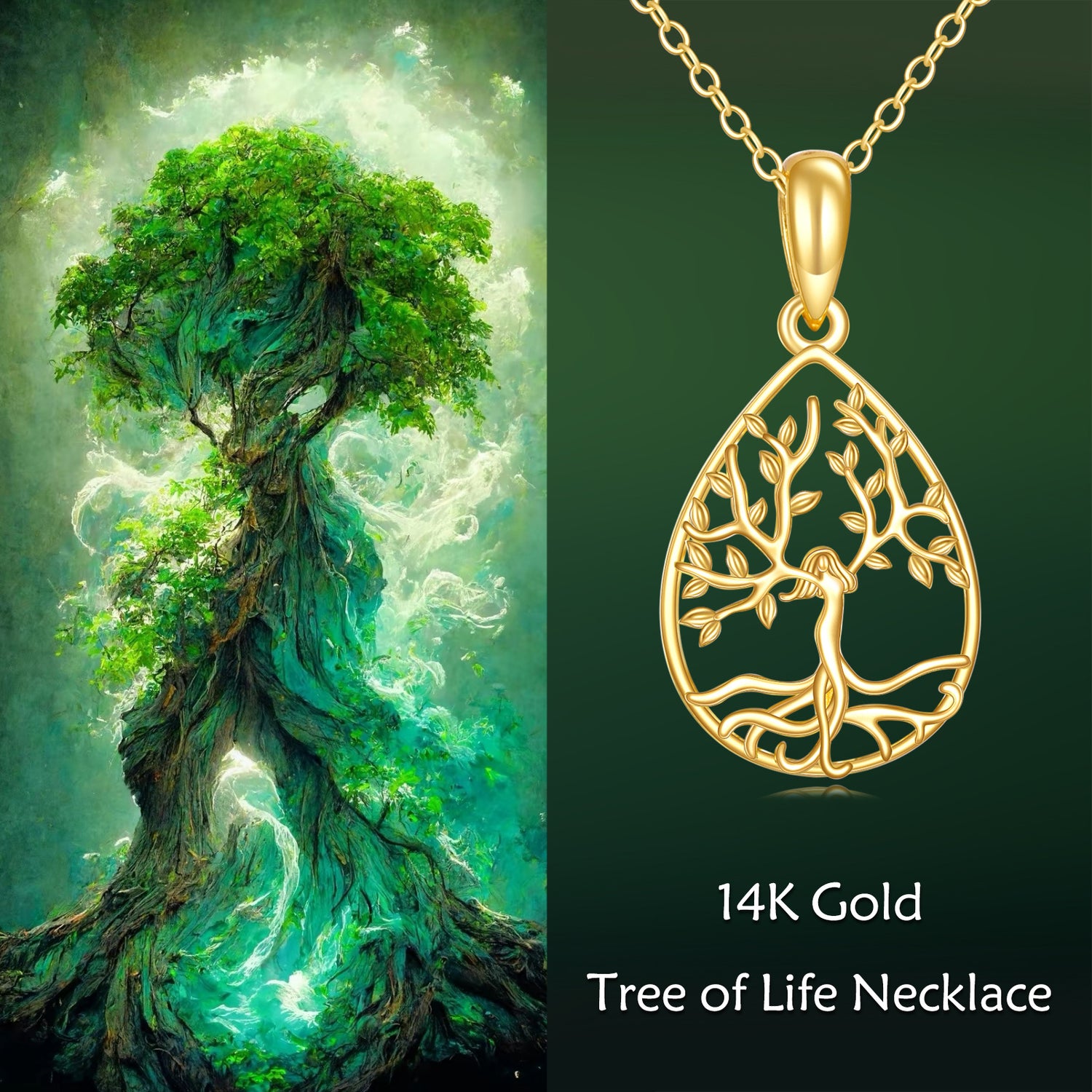 Crafted from 14K yellow gold, featuring an intricate Tree of Life Pendant Necklace.