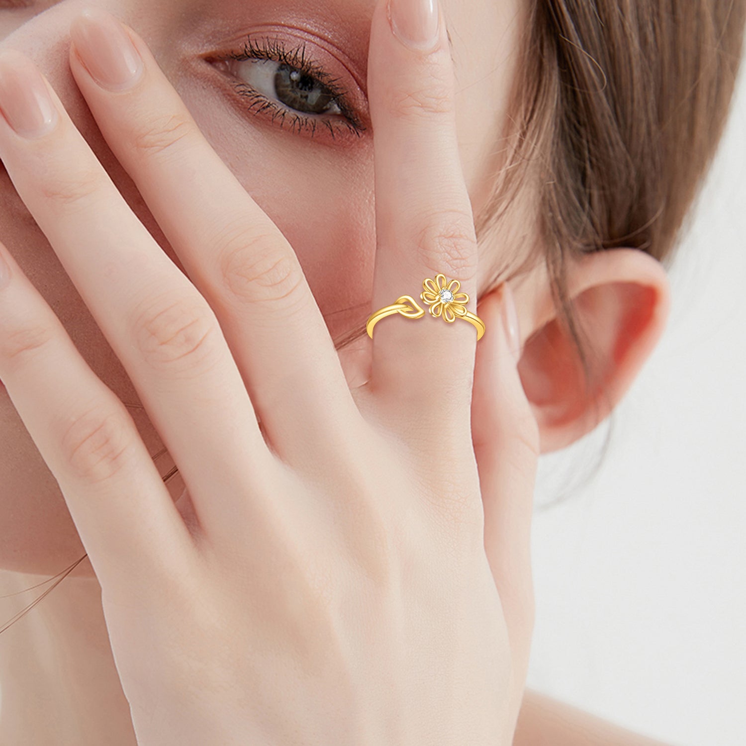 This 14K Gold Cubic Zirconia Daisy Open Ring by YFN captures the joyful delicacy of a blooming daisy, a symbol of renewal, purity, and lighthearted charm. Each petal is adorned with a clear Cubic Zirconia that sparkles softly against the luminous gold, creating a floral motif that feels uplifting and refined. The open-ring silhouette adds a modern touch and allows for comfortable adjustability. Perfect as a daily signature or a thoughtful gift, this ring brings a graceful, nature-inspired elegance to any collection.