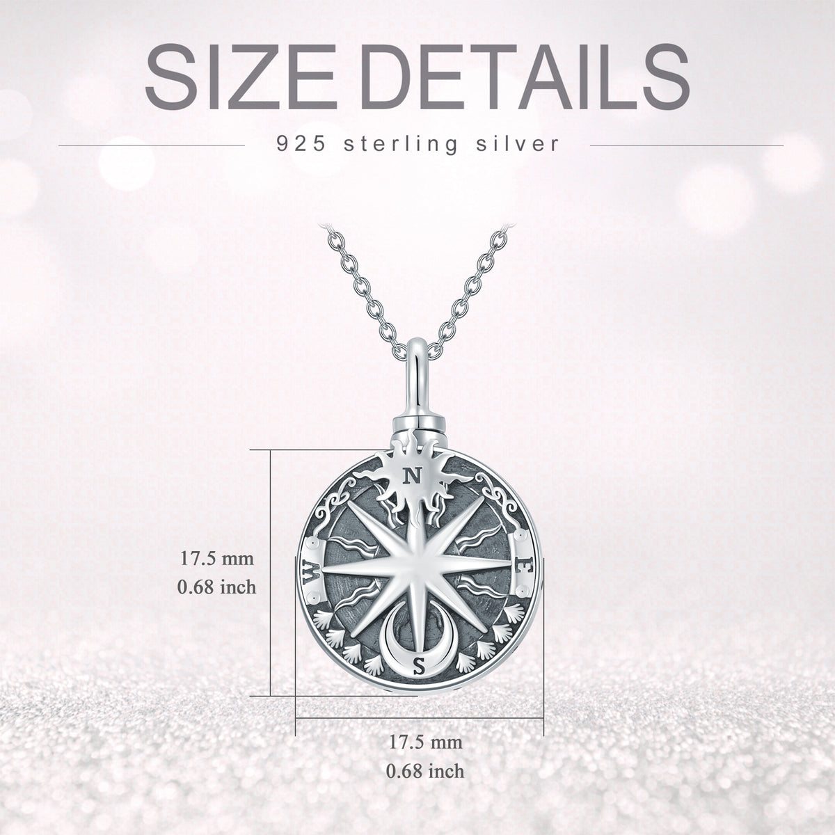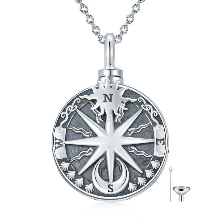 Sterling Silver Compass Sun & Moon Urn Necklace for Ashes