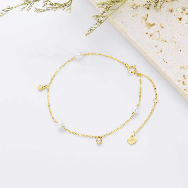 This 14K Gold Pearl Chain Bracelet by YFN is an exquisite piece for women, designed to elevate any outfit with timeless elegance and luxury. This stunning bracelet combines the classic sophistication of lustrous pearls with the rich opulence of 14K gold, meticulously crafted to ensure durability and lasting beauty.