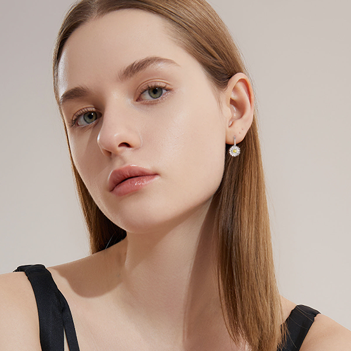 Crafted from Sterling Silver with White Gold and Yellow Gold finishes (Two-Tone). These are Circular Shaped Lever-back Earrings featuring a Daisy design, set with Yellow Cubic Zirconia stones.
