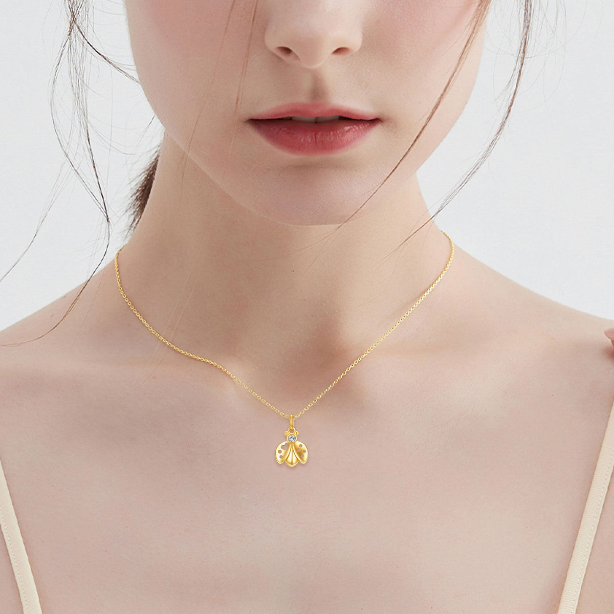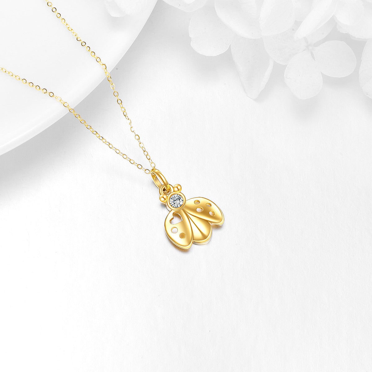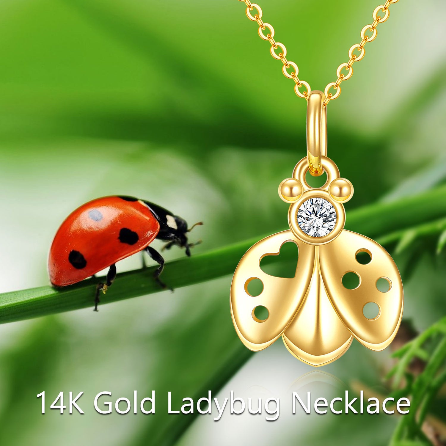 14K Gold Cubic Zirconia Ladybug Pendant Necklace