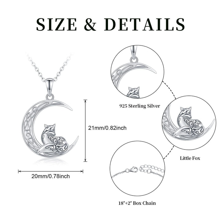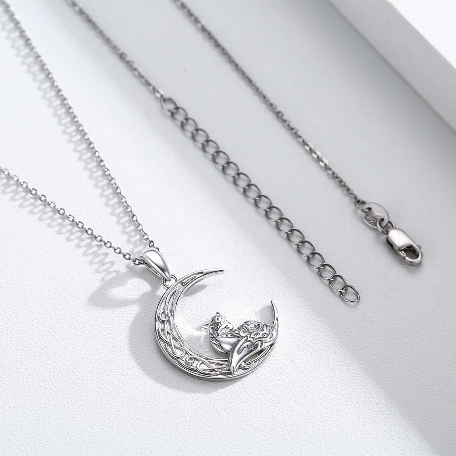 Sterling Silver Fox Celtic Knot Moon Pendant Necklace