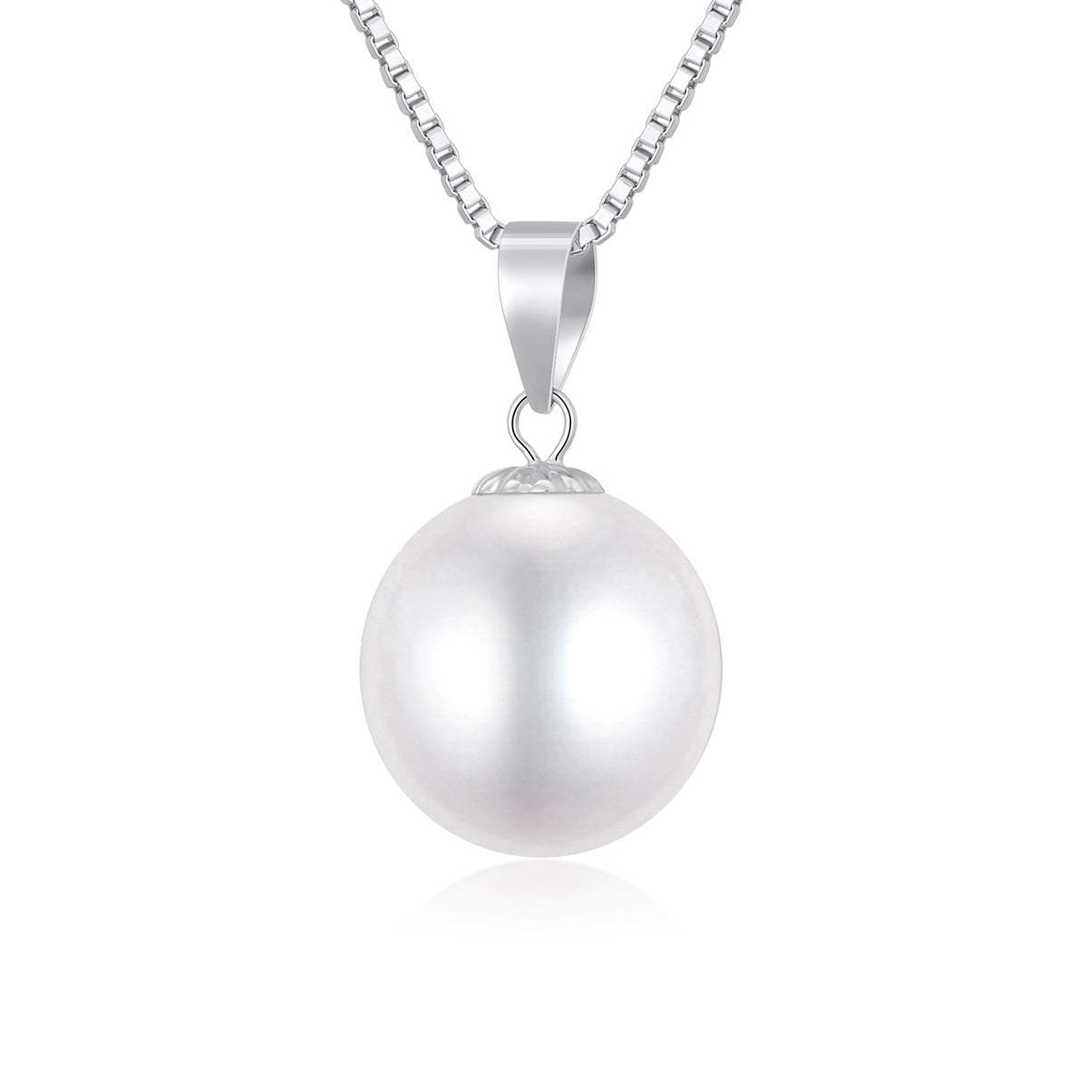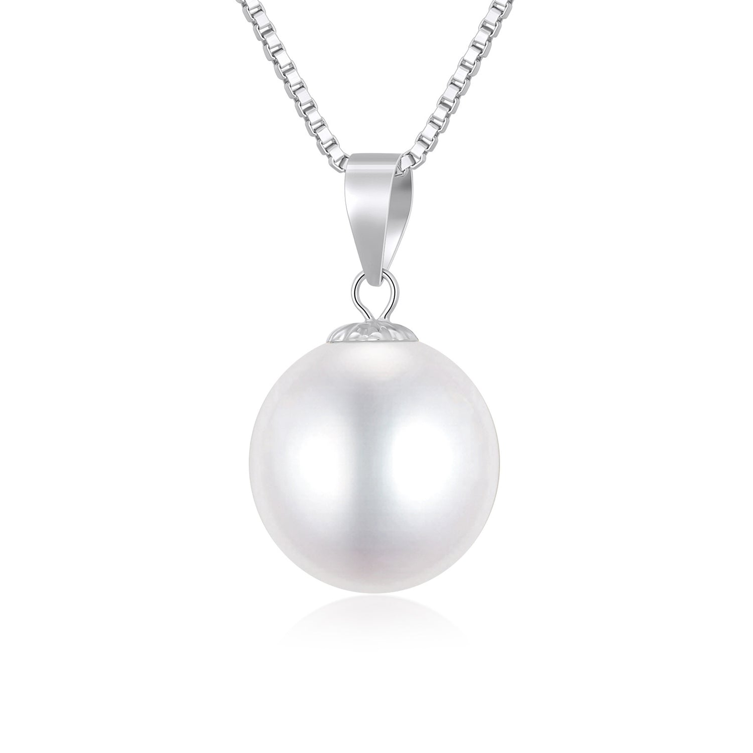 14K White Gold Circular Shaped Pearl Spherical Pendant Necklace