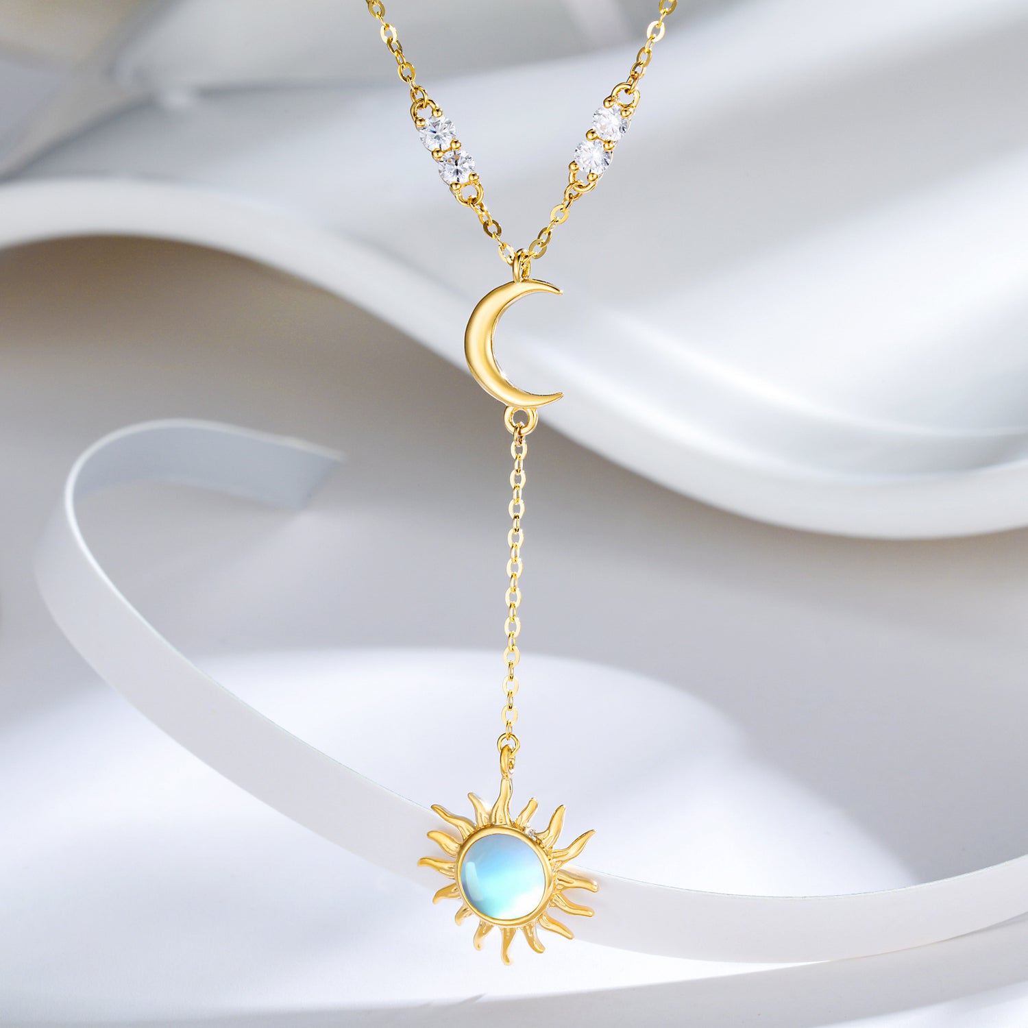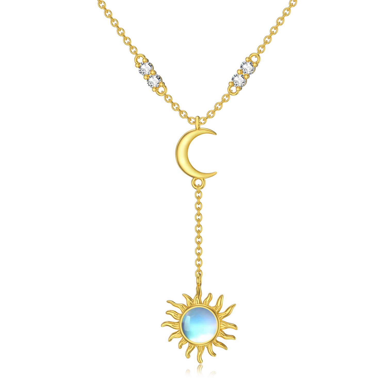 14K Gold Circular Shaped Moonstone Moon & Sun Adjustable Y Necklace