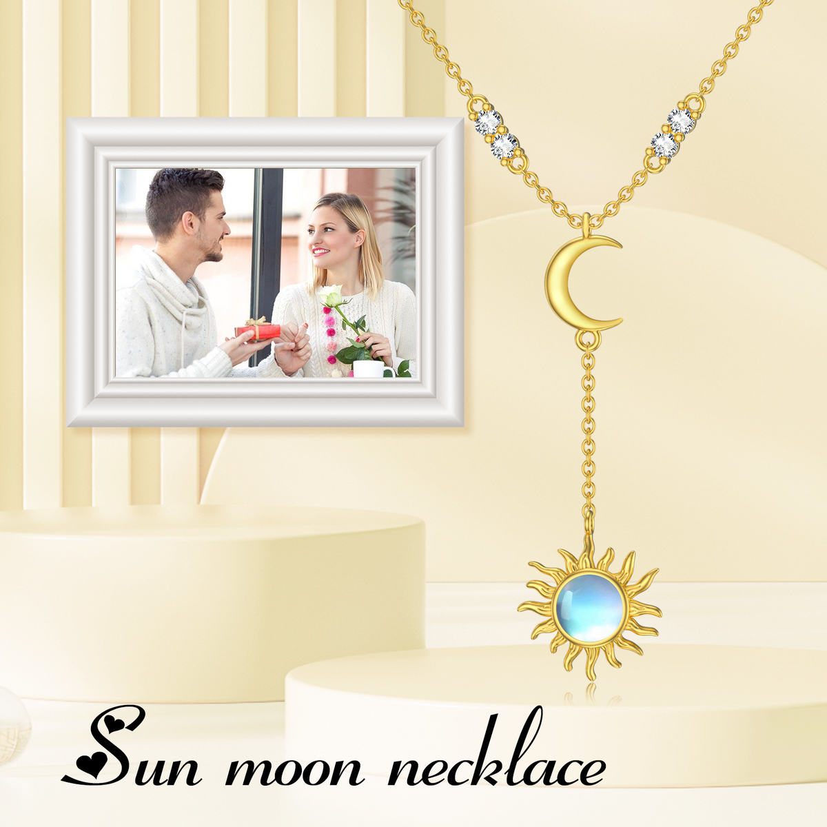 This 14K Gold Circular Shaped Moonstone Moon & Sun Adjustable Y Necklace by YFN is an exquisitely designed adjustable Y Necklace for women, adding celestial charm to any outfit. Crafted from luxurious 14K gold, the circular-shaped pendant showcases a stunning combination of sun and moon elements, centered with a radiant moonstone. The adjustable design allows for versatile styling.