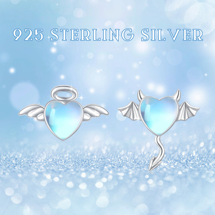 Sterling Silver Moonstone Angel & Heart Stud Earrings