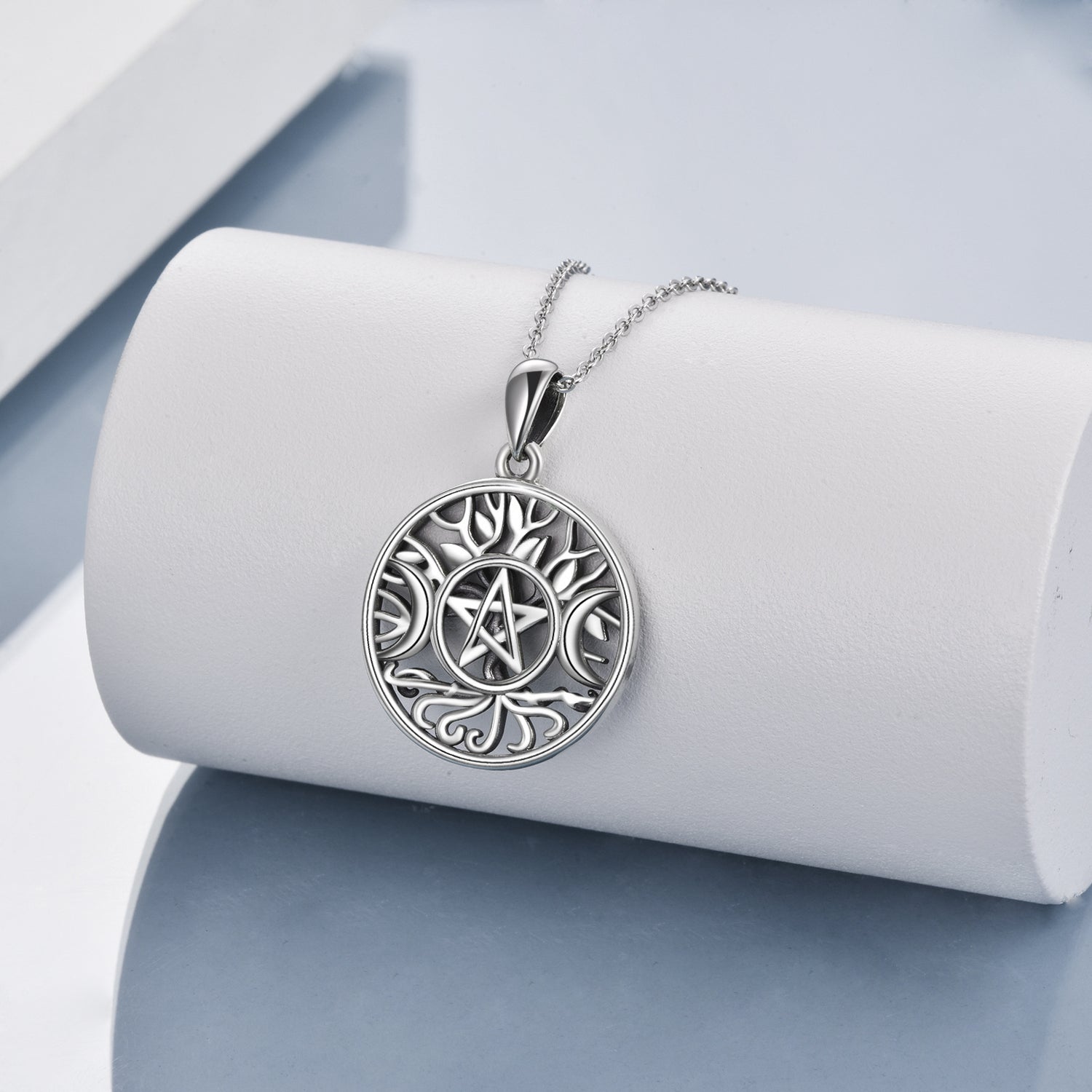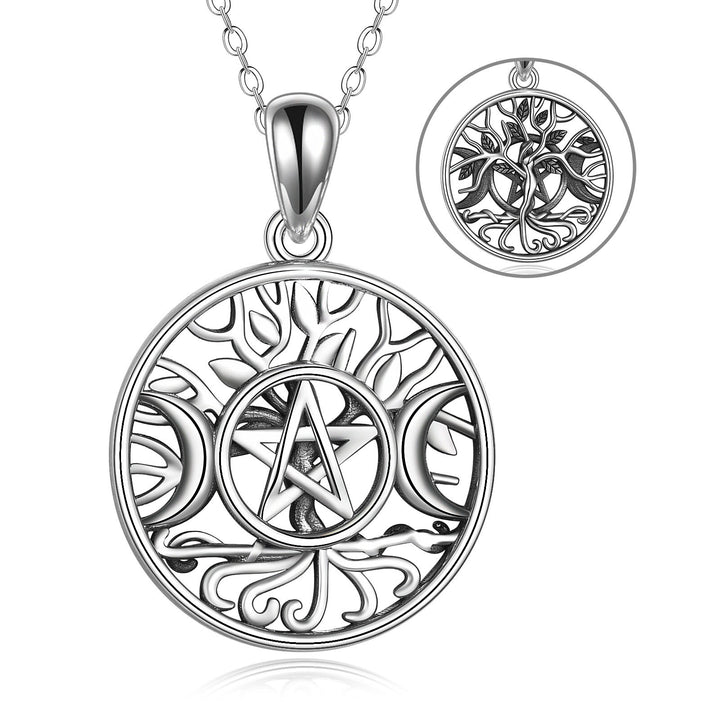 Sterling Silver Tree Of Life & Triple Moon Goddess Pendant Necklace