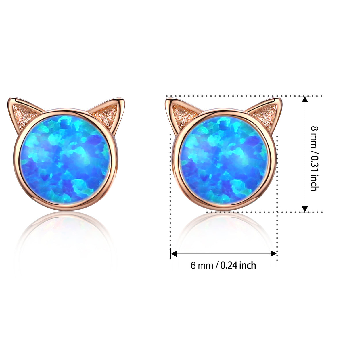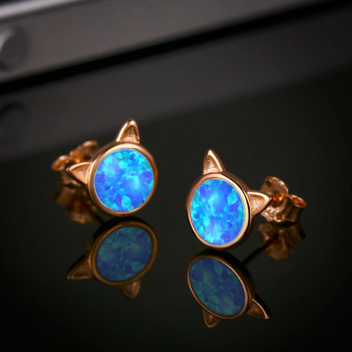 Sterling Silver with Rose Gold Plated Opal Cat Stud Earrings