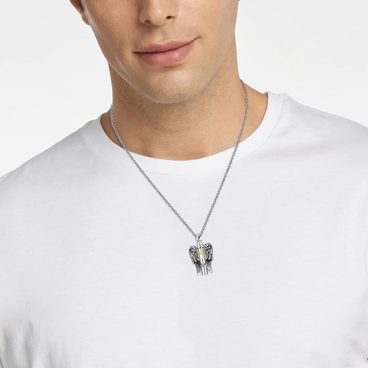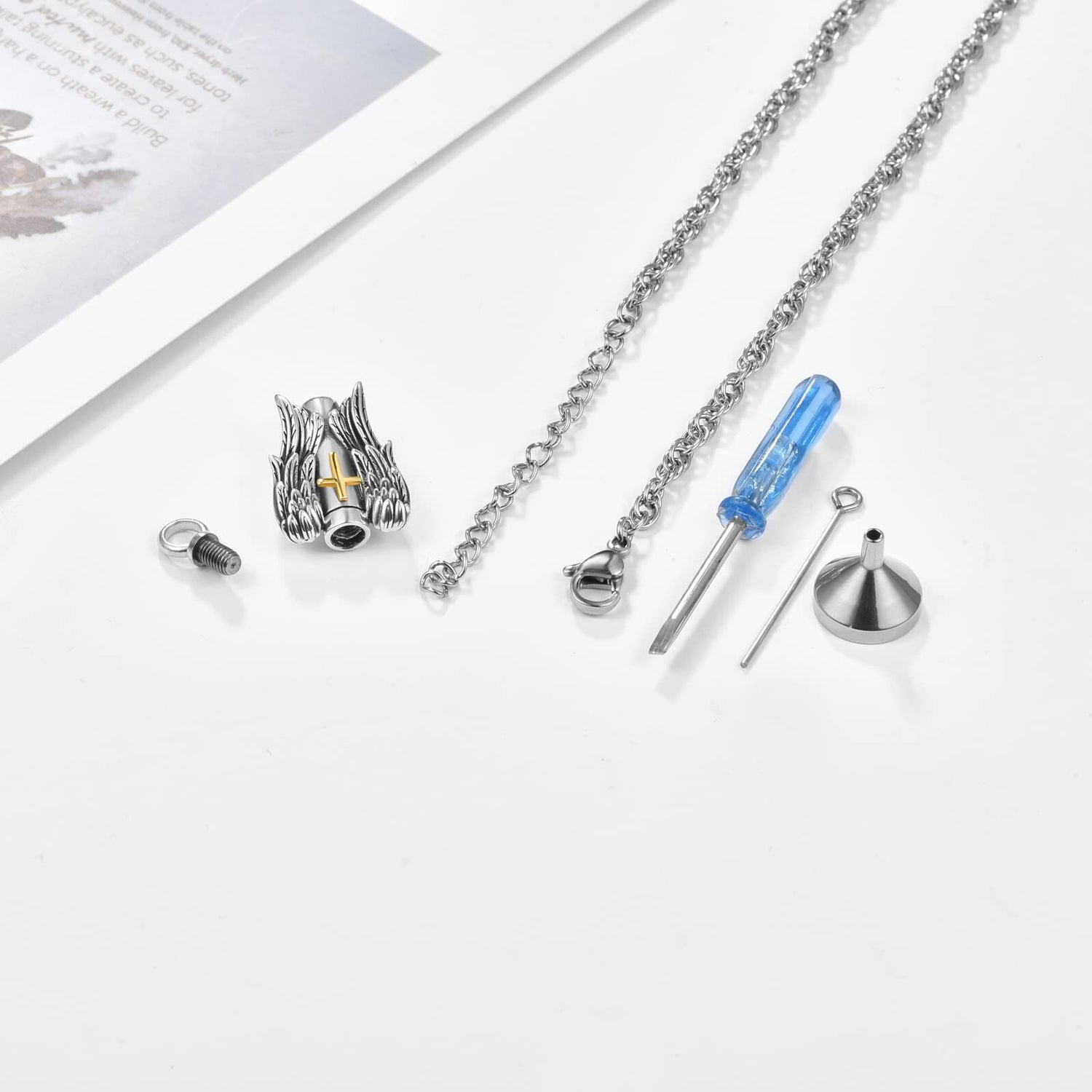 Sterling Silver Two-tone Angel Wing & Cross Urn Necklace for Ashes