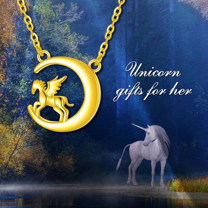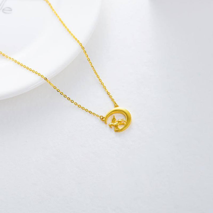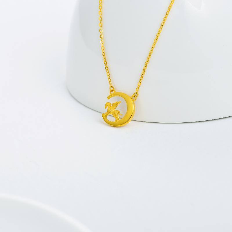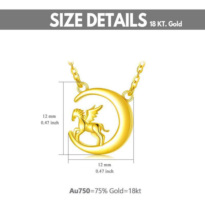 This no-stone Women's Pendant Necklace is crafted from High-Quality 18K Gold, Featuring an Enchanting Horse and Moon Motif.