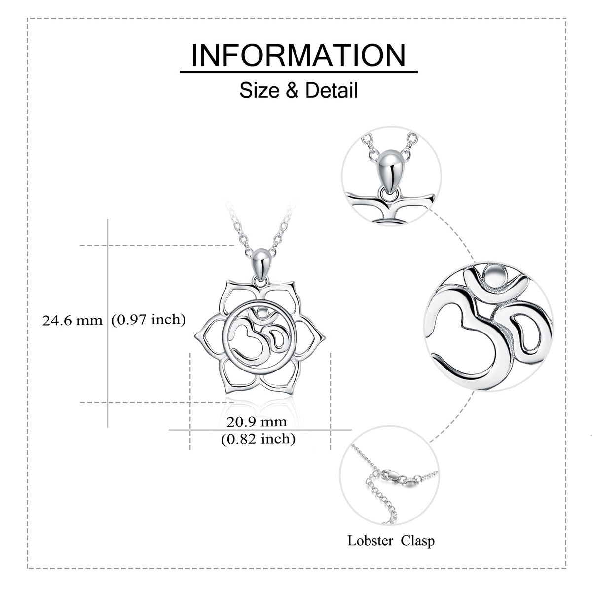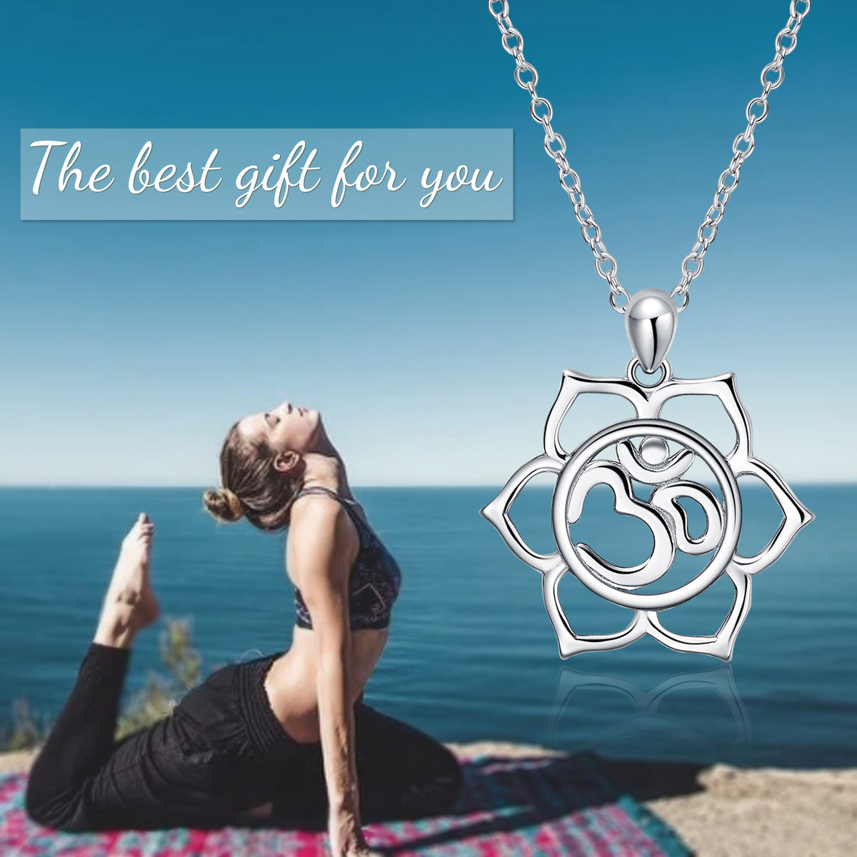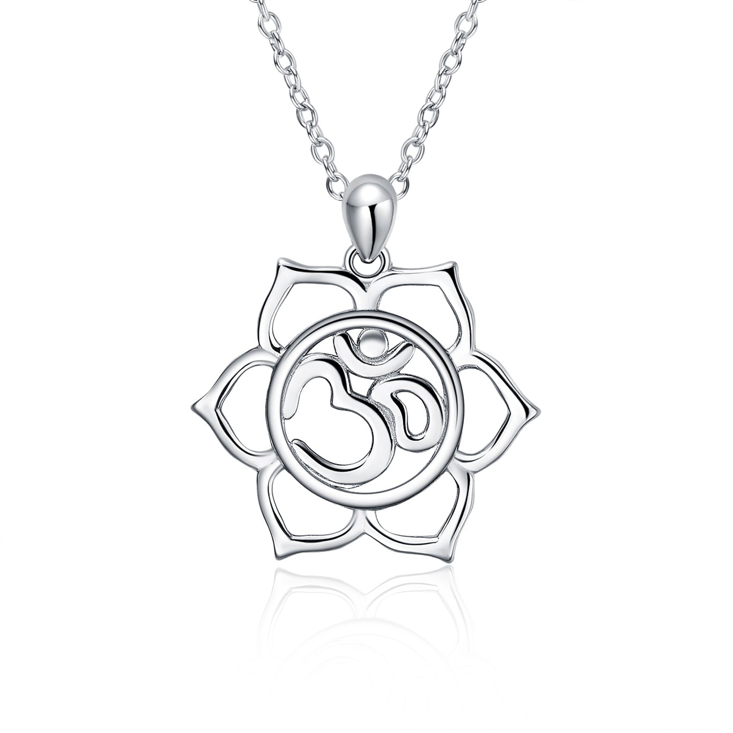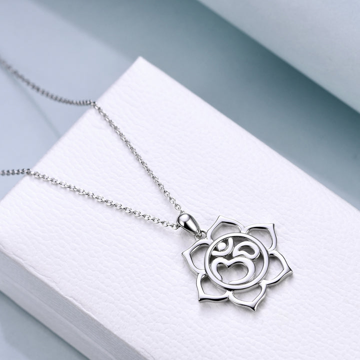 This no-stone Women's Pendant Necklace is crafted from Sterling Silver with White Gold Plating, Inspired by Yoga.