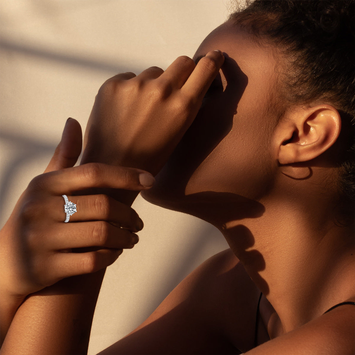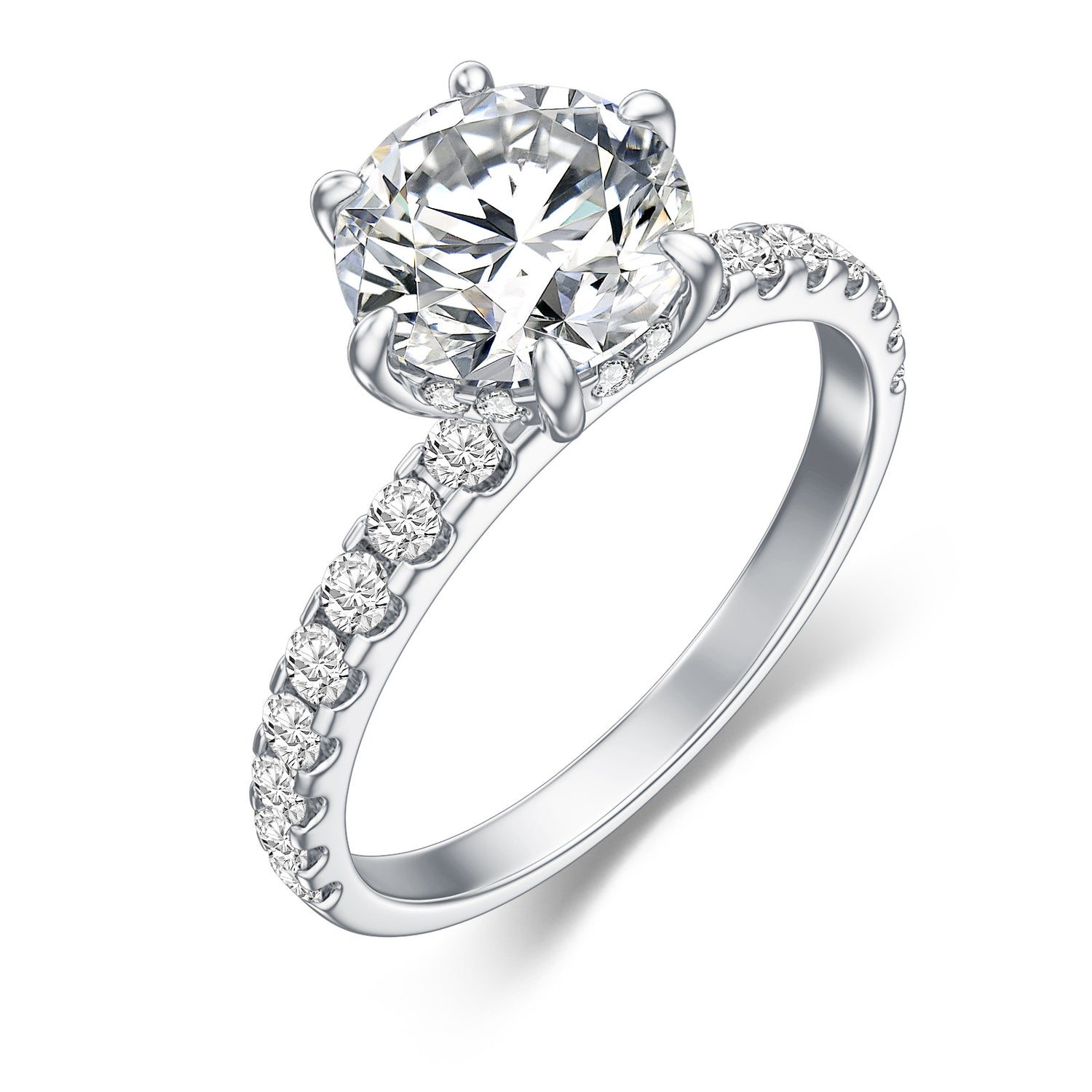 18K White Gold Round Shaped Moissanite Engagement Ring