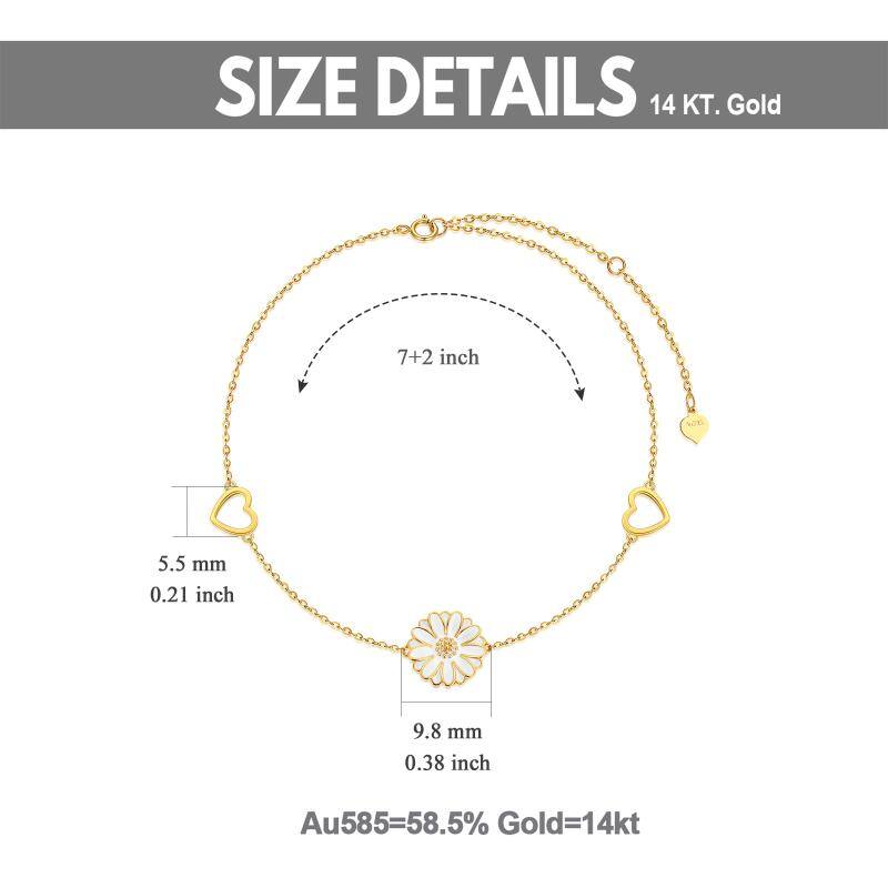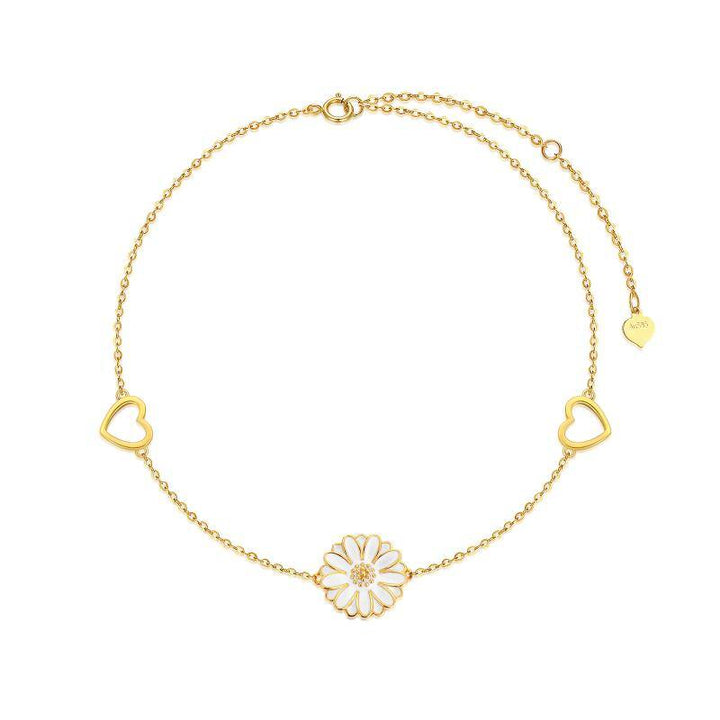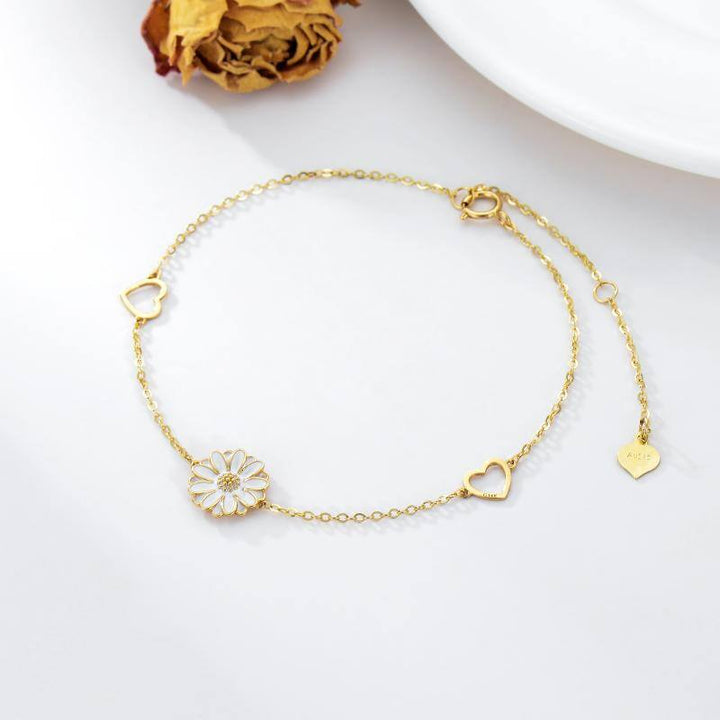 This 14K Gold Daisy & Heart Charm Bracelet by YFN pairs charming daisy and heart motifs with polished gold for a feminine, sentimental accessory. Designed without stones for a sleek finish, this bracelet offers women a delicate, meaningful piece ideal for daily wear or gifting.