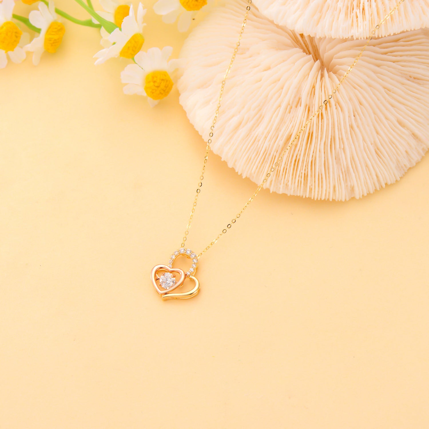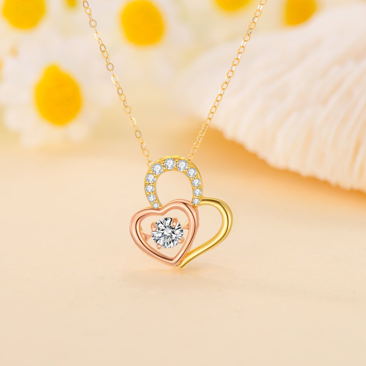 14K Gold Two-tone Moissanite Personalized Birthstone Couple Heart With Heart Necklace