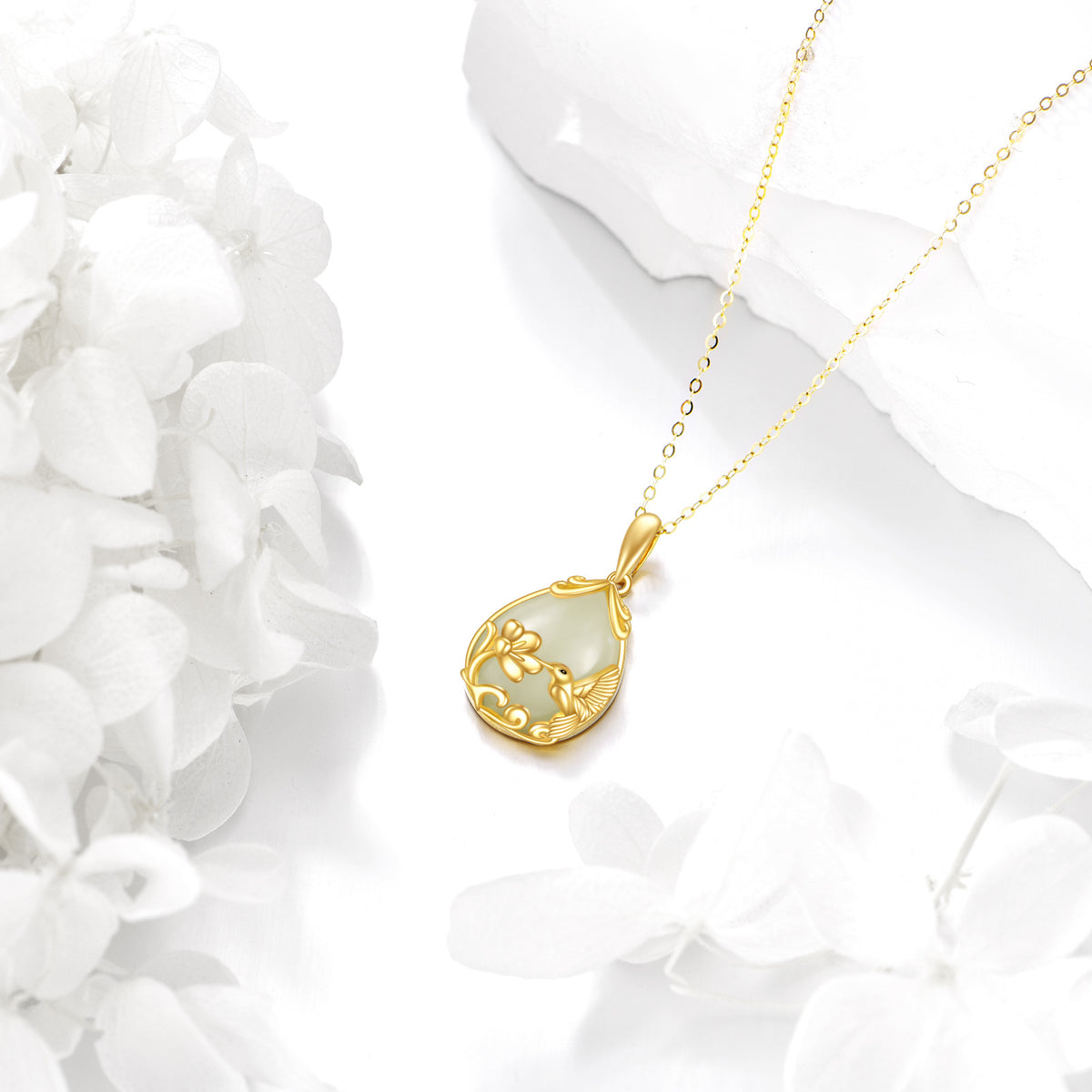 14K Gold Pear Chalcedony Hummingbird Drop Shape Pendant Necklace