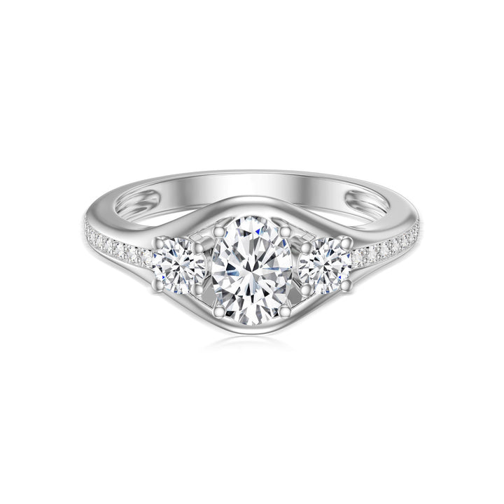 9K White Gold round Shaped & Oval Shaped Diamond Custom Wedding Ring 3EX IGI Certified