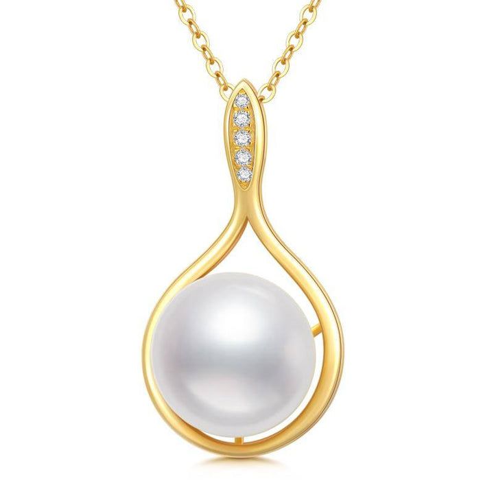 14K Gold Moissanite & Pearl Drop Shape Pendant Necklace