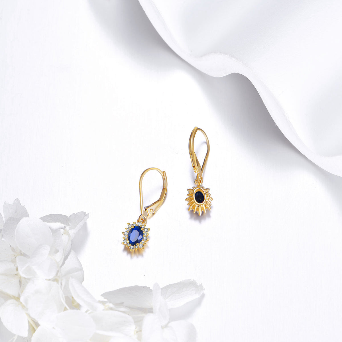 14K Gold Marquise Cut Sapphire Lever-back Earrings