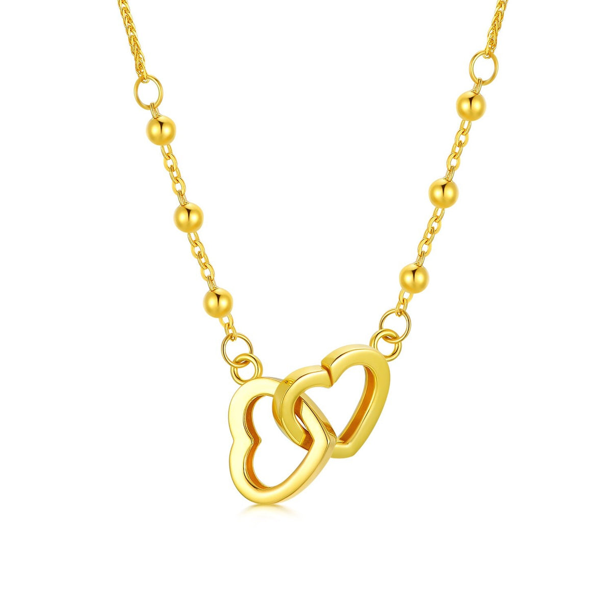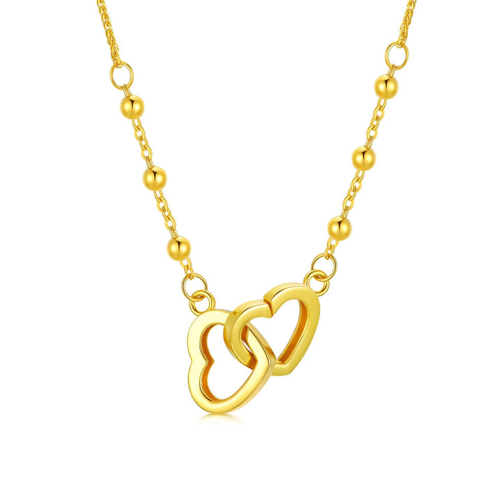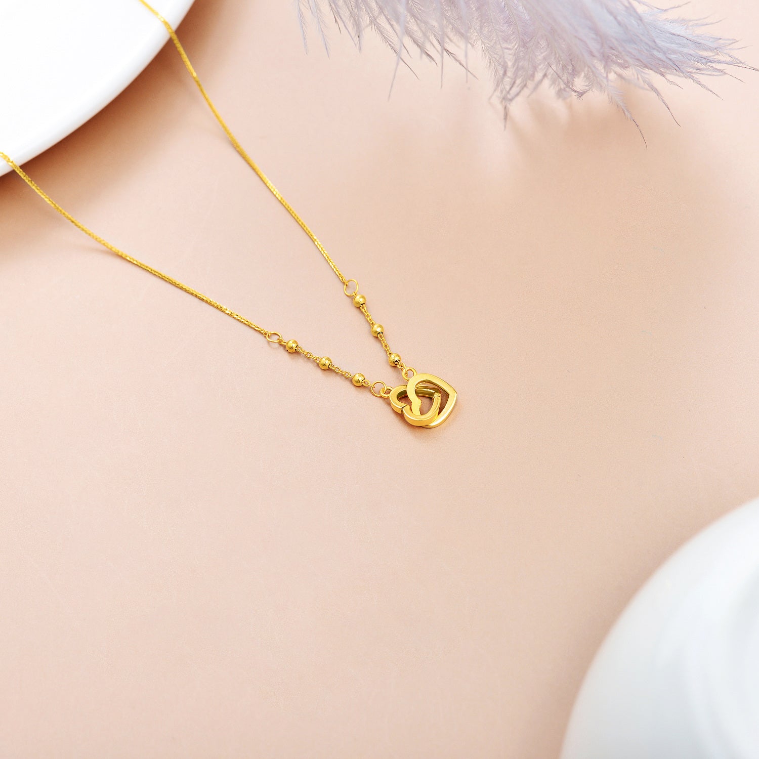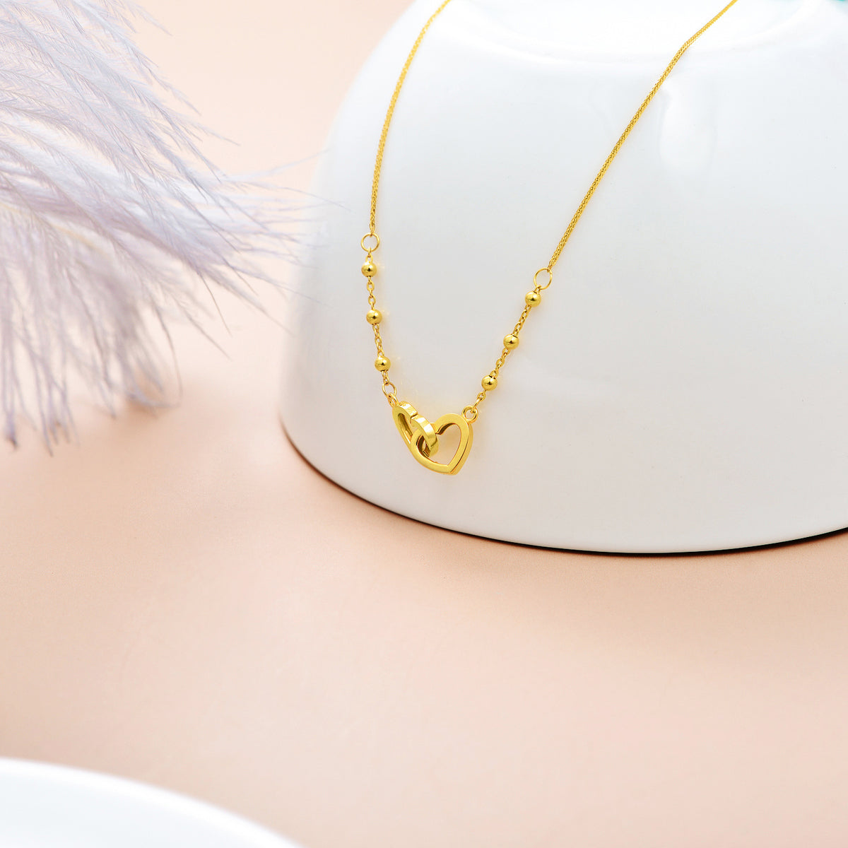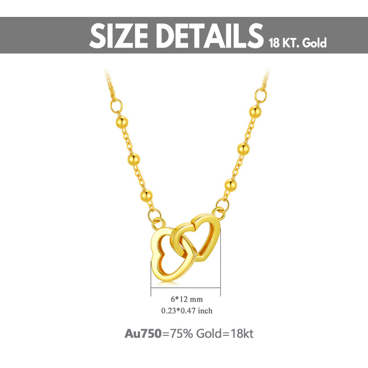 18K Gold Interlocking Hearts Pendant Necklace For Women