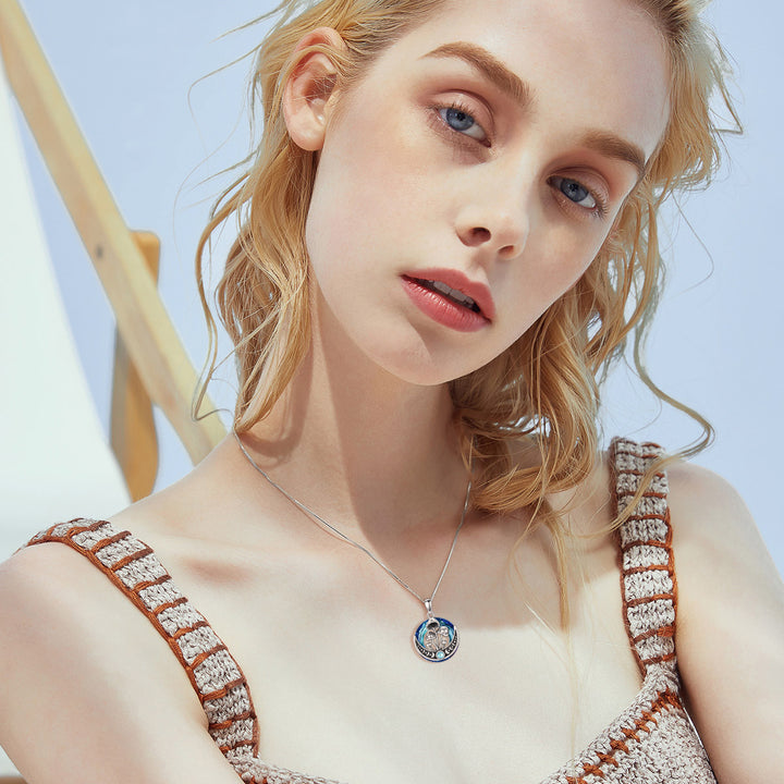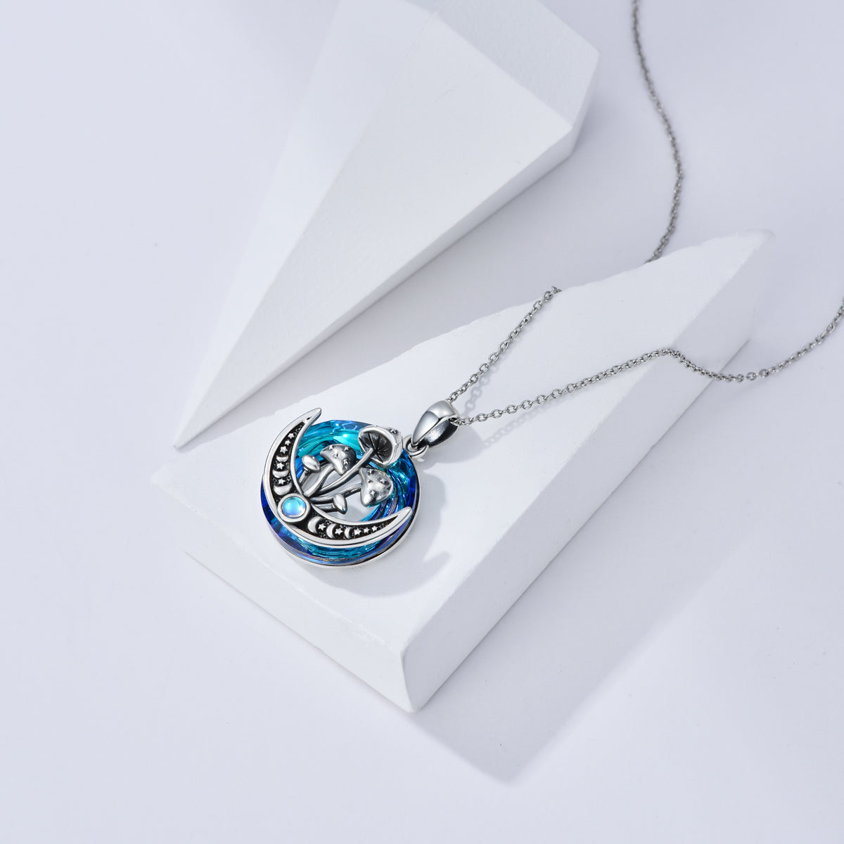 Sterling Silver Circular Shaped Mushroom & Moon Crystal Pendant Necklace