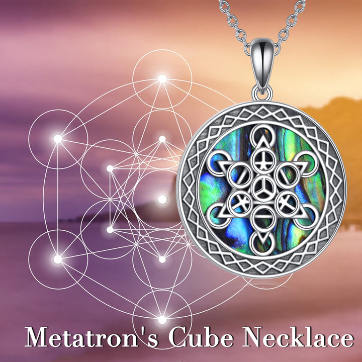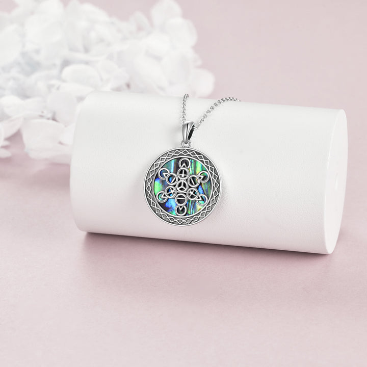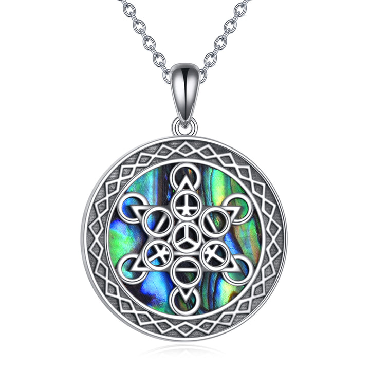 This Unisex Pendant Necklace is crafted from White Gold-Plated Sterling Silver, featuring a Star of David Design Inlaid with Iridescent Abalone Shellfish.