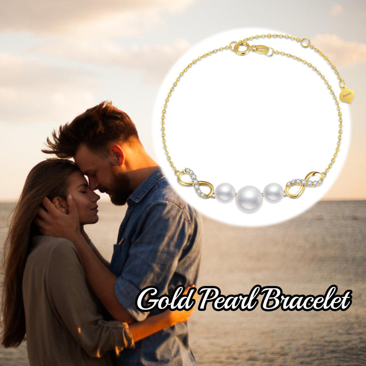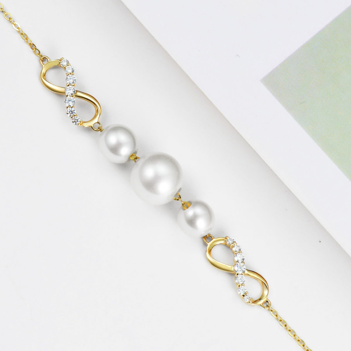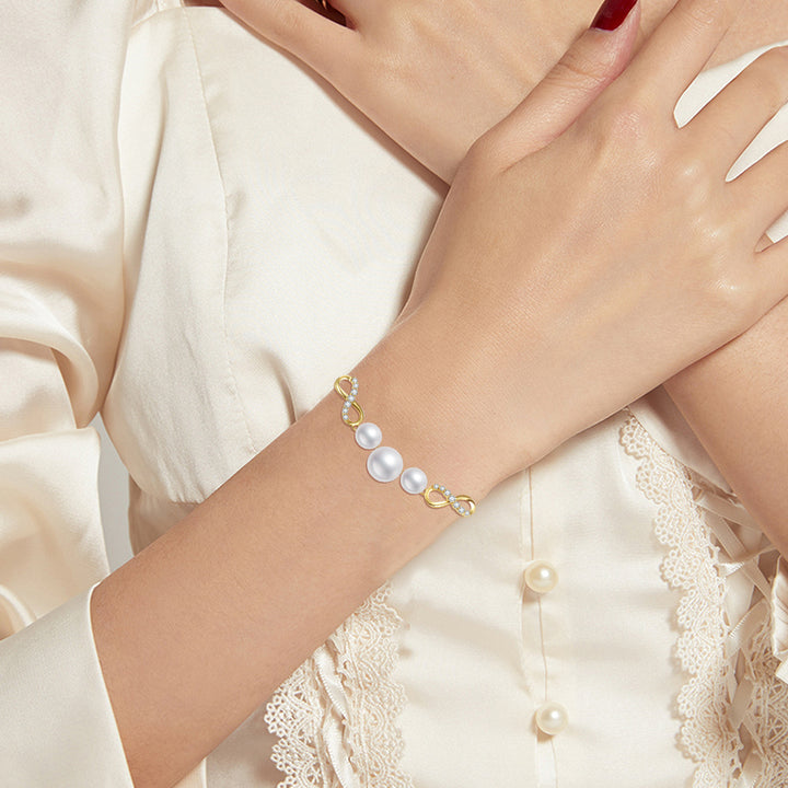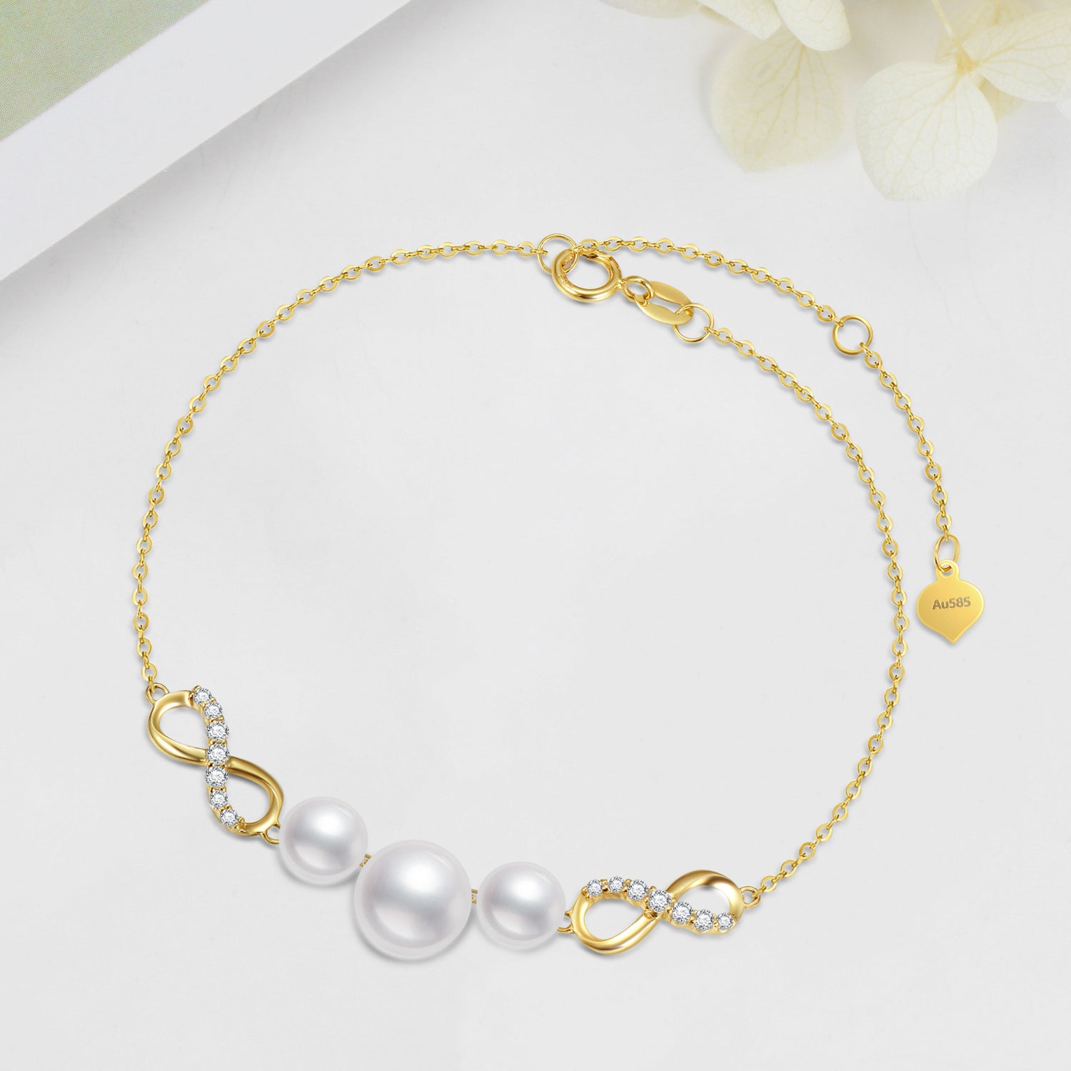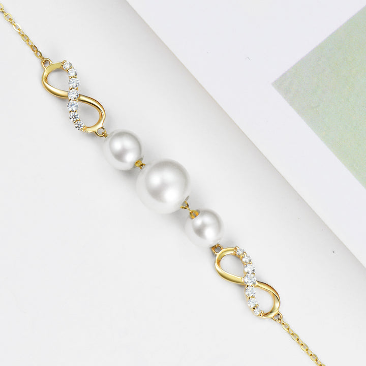 14K Gold Moissanite & Pearl Infinity Symbol Charm Bracelet