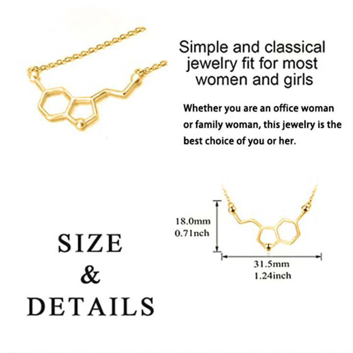 This 14K Gold Serotonin Molecule Pendant Necklace by YFN celebrates happiness and balance through a refined molecule silhouette crafted in luminous gold. Designed as a unisex piece, its minimal, stone-free form offers symbolic elegance for everyday inspiration.