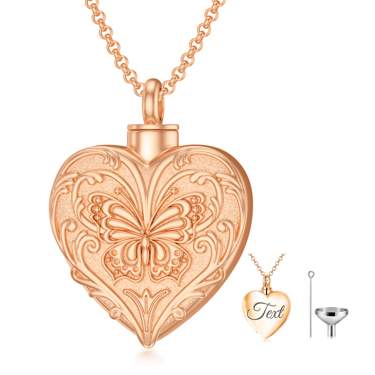 10K Rose Gold & Personalized Engraving Butterfly Urn Necklace for Ashes