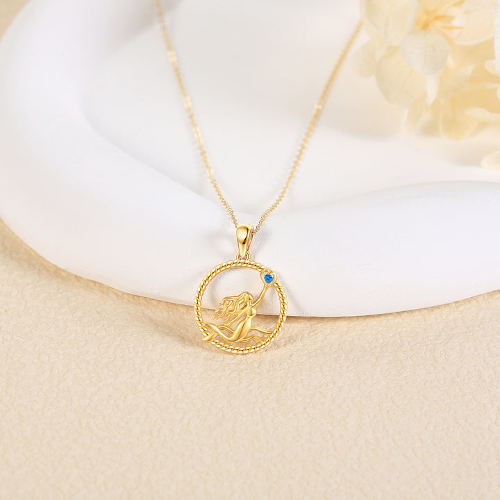 14K Yellow Gold Heart Moissanite Mermaid Pendant Necklace