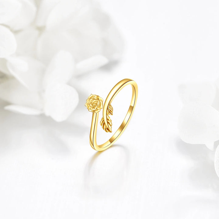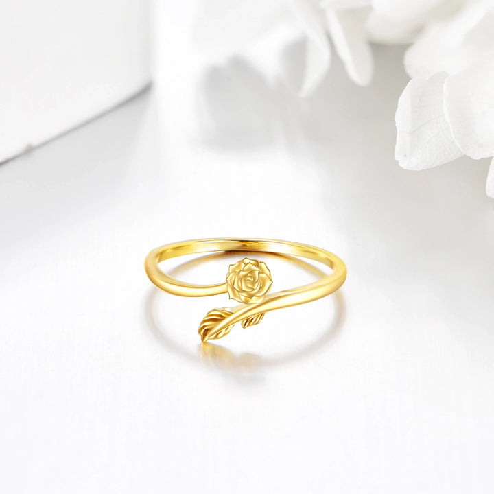This 14K Gold Rose Open Ring by YFN is a stone-free, timeless, and romantic piece for women. Made entirely of luxurious 14K gold, this stunning open ring features an exquisite rose design, embodying grace and romantic charm with a versatile and minimalist aesthetic.