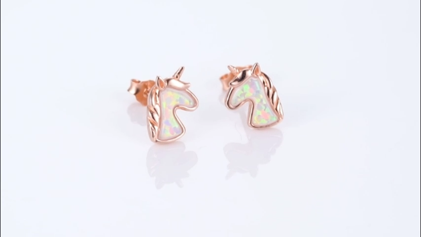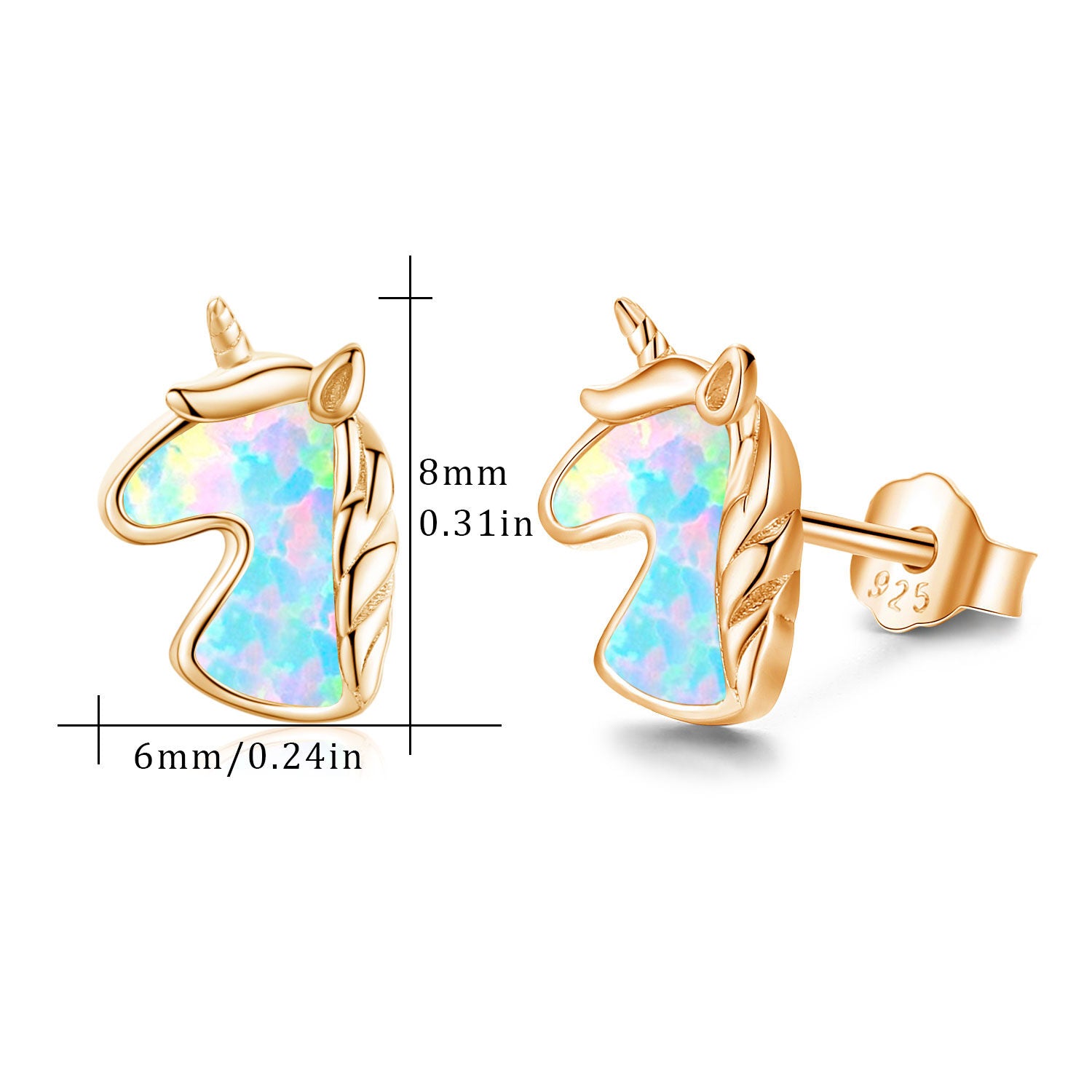 Sterling Silver with Rose Gold Plated Opal Unicorn Stud Earrings