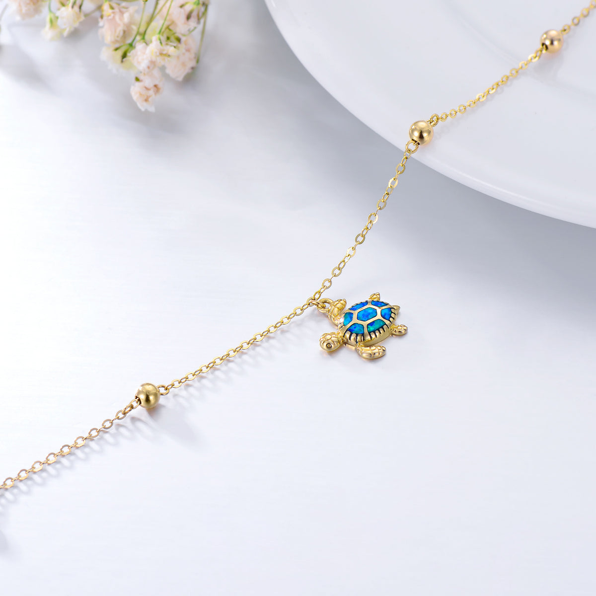 Crafted in sterling silver with yellow gold plating, featuring blue opal sea turtle charm. Adjustable bracelet length; standard YFN specifications.